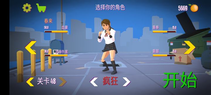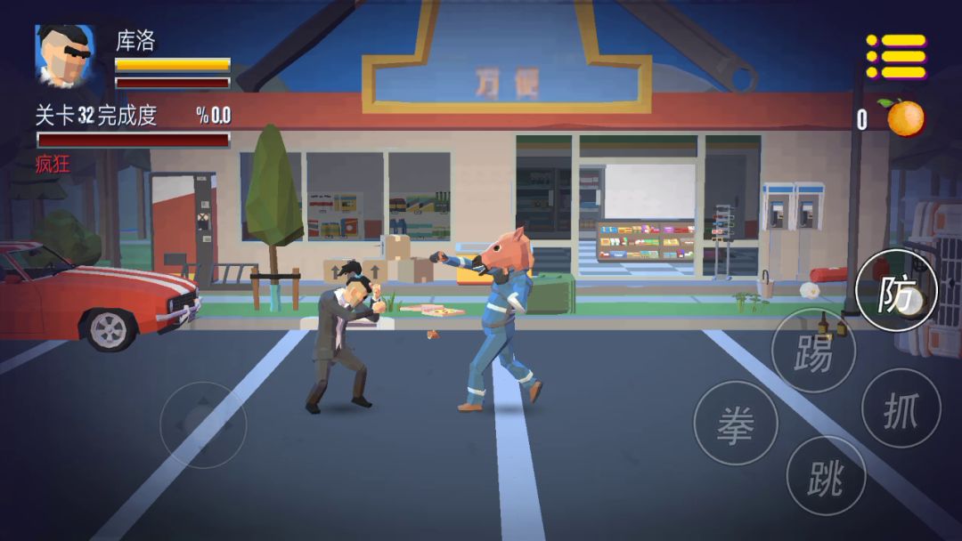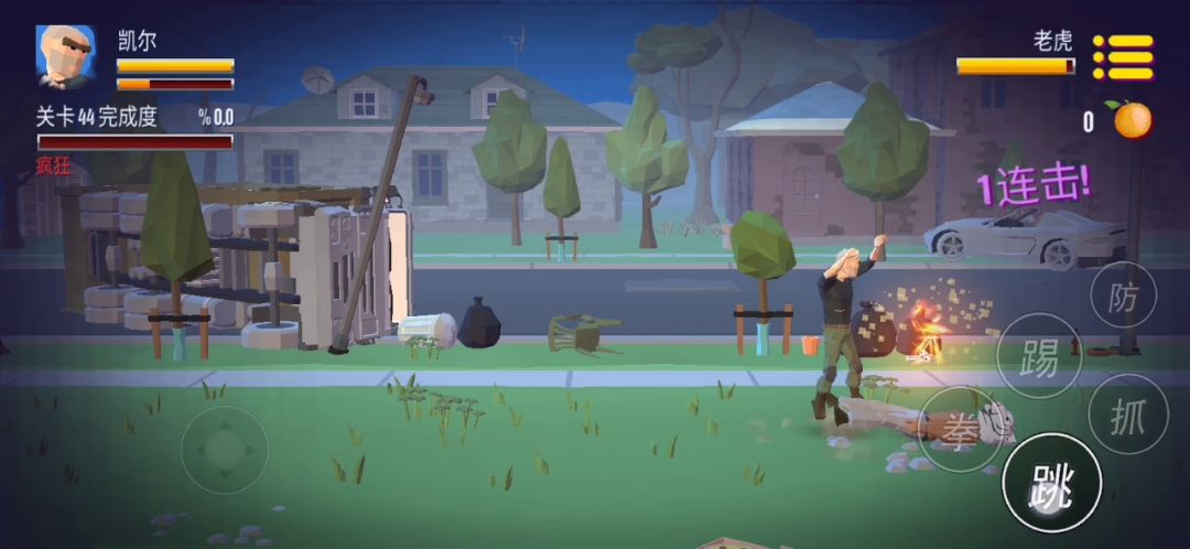 (玩过一会儿了的直接从下面的招式开始看)摇杆:可以在右上角的暂停键设置为动态或者静态,因为摇杆难操控且小,所以想练习搓招式可以用静态摇杆,不然就用动态摇杆更好走路,但是有些招式可以轻松打出,有些招式基本打不出武器:地下会闪的棍子之类的武器,走到武器上面按“拳”按键即可捡武器,武器伤害比拳头大几倍,武器的耐久大约为5到6下左右,武器被打坏后则会朝敌人扔去,掉落捡起可再扔一回,同时最多可以捡起两把