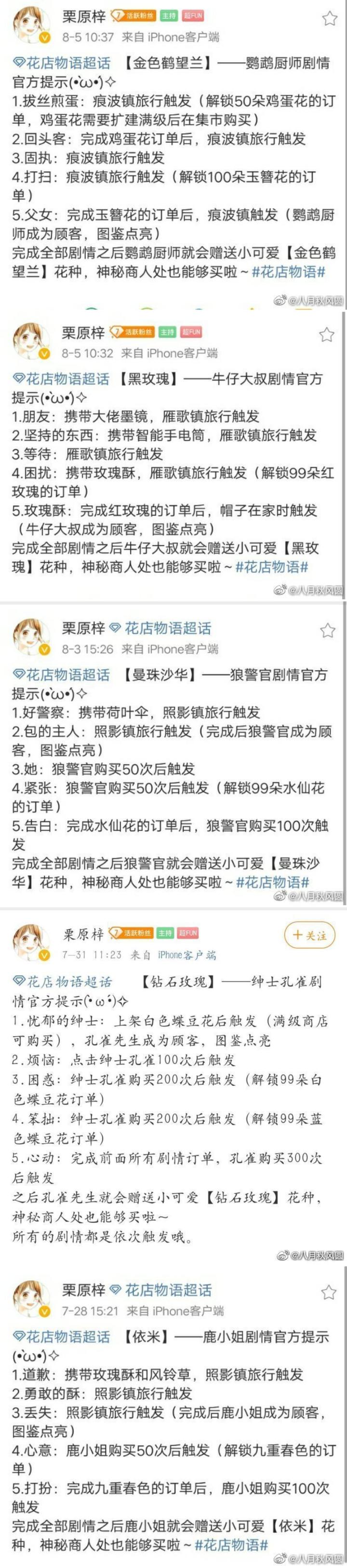 突如其来的幸运!!!1234这数字真是yyds!!!1234 春 痕波镇连续出现四次稀有和奇珍的花花,分别是:海洋牡丹,紫藤萝,粉色月光花和君子兰。并且解锁了两次人物剧情以及附赠两张明信片。