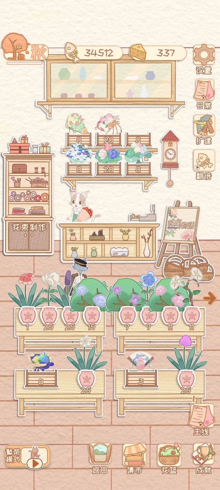 有个小建议就是买花种子的时候能不能出个输入数量的然后做花束的时候可不可以出一个一键做完当前这种花能做的最高的数量毕竟都可以一键收花了对吧……