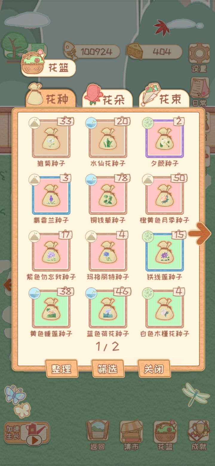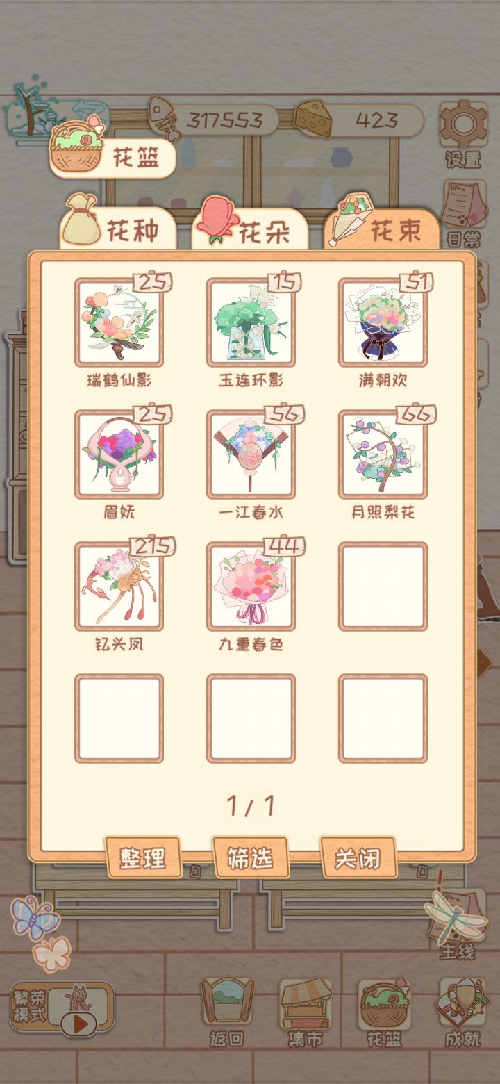 3.12季节显示和售卖相关bug图片里面显示的是夏天但实际是秋天,这种问题已经出现了不下五次。再者就是售卖效率问题——有的时候就切出去一会(可能三五分钟),刚上满的花/花束就卖完了,但是有的时候盯着它卖却很慢很慢。除了售卖的效率问题,还有就是花朵生长紊乱。同样是切出去一会,刚播种的稀有花就长好了。最后就是,我上完花/花束才发现有更新,更新完店里啥都没了,钱钱也没有增加3.13花朵/花束数