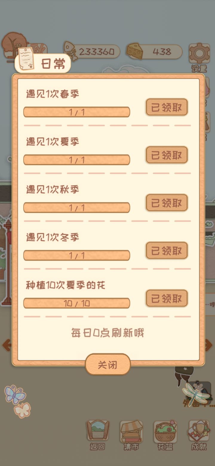 bug1.日常任务总是变化,每次点进去,每日任务都不一样,很多时候都说任务完成了,还自动把任务完成的奖励领了,我根本就没领。2.在该季节播种该季节的花朵,收获的数量居然是随机的,而不是最佳数量。3.以前花架上架花朵最多可以50朵,现在只有25,就不爽。4.明明很多花都不是第一次种了,退出以后重新进入,再次播种这种花就显示是第一次种。5.那些NPC任务也是,都不是第一次来买花了,次次都显示第一次。求求了,快点修复这些bug吧