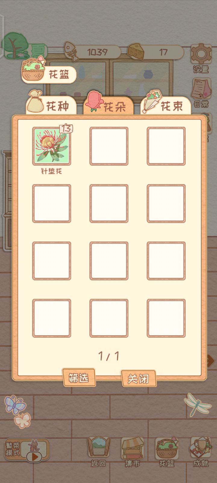 花瓶里的花卖完了变成零,还是会显示花朵。并且如果你在0的那个地方上架另一种花,就会仍显示你之前放的花。