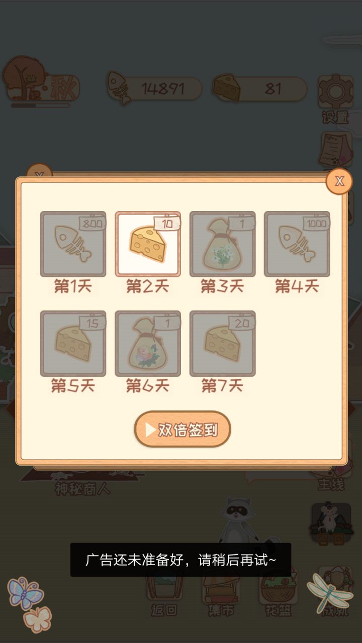 无语,签到只能看广告,广告又刷不出来,不止签到签不了,神秘商人还有一些buff全都用不了,简直绝望