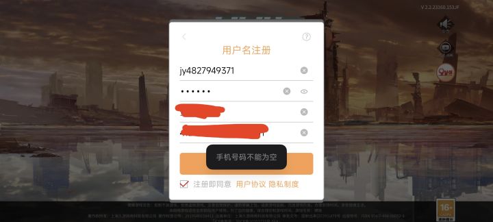 如题,用手机号注册,输入验证码后就没反应了。用自定义账号密码注册又显示要输手机号。