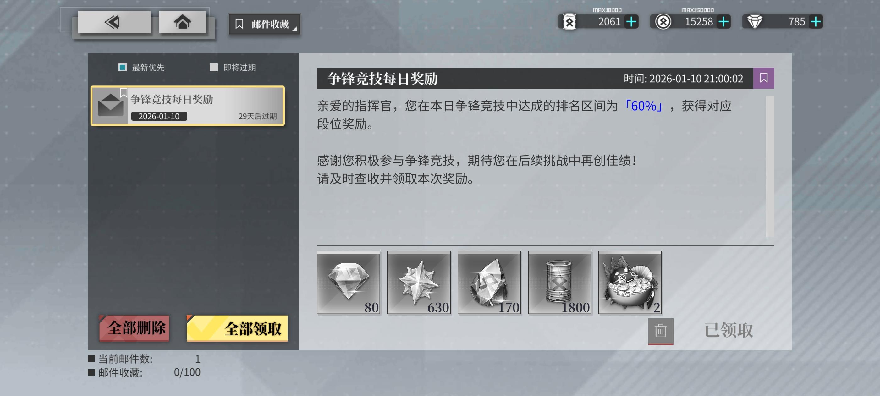 我争锋就第一天打了一下,后面都在30左右徘徊,但是奖励只给60的