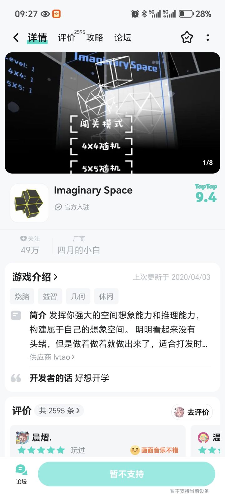 自从换了手机后以前下载的所有游戏都下载不来#游戏日常 #imaginaryspace #单机游戏