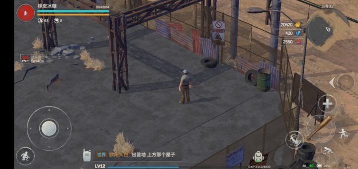 人物走到厂房后面,根本看不到自己的人,只能靠小地图判断。