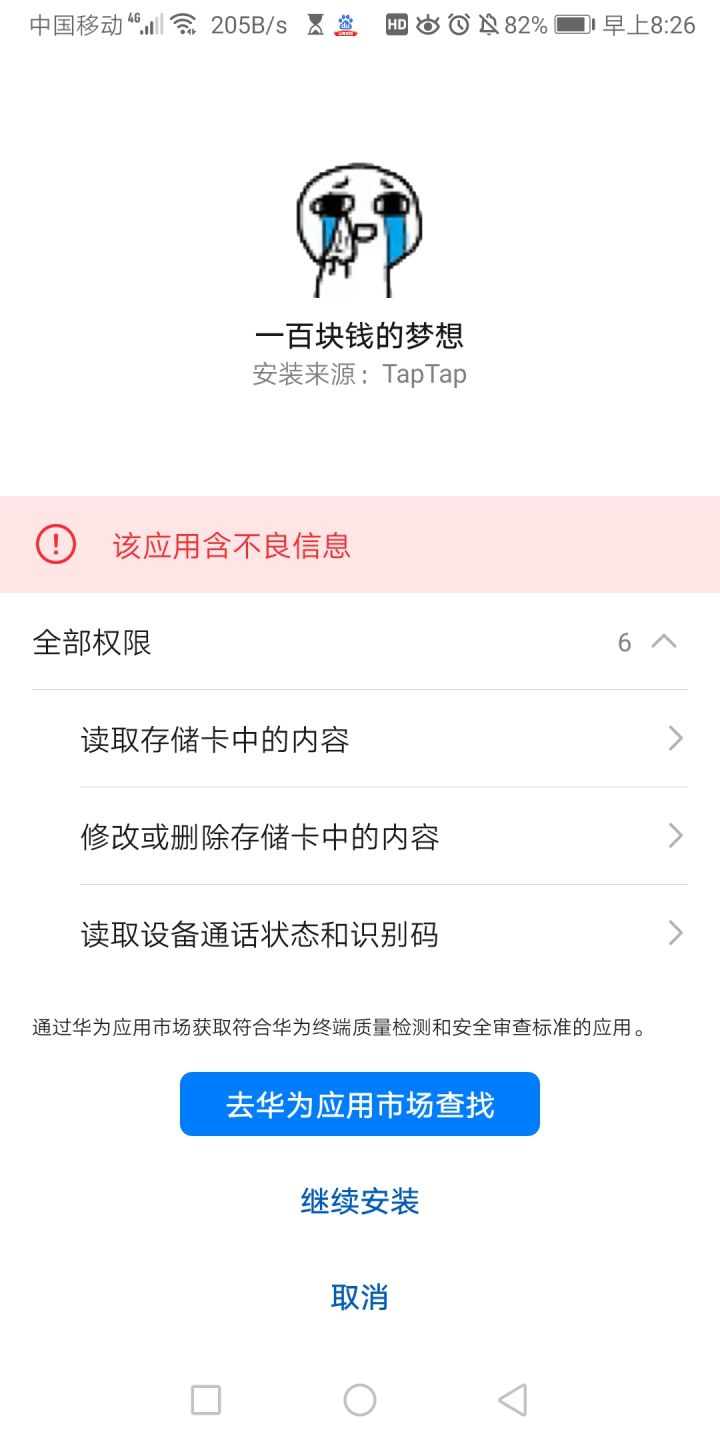 大家好啊,我是君莫愁。一百块钱的梦想有一个报错的bug,需要各位玩家们注意一下!如果您遇到和这个类似的情况,只需要在应用权限管理中给游戏授予手机存储的权限即可!另外,如果您在游戏中还遇到什么问题,请在此贴中回复哦⊙∀⊙!