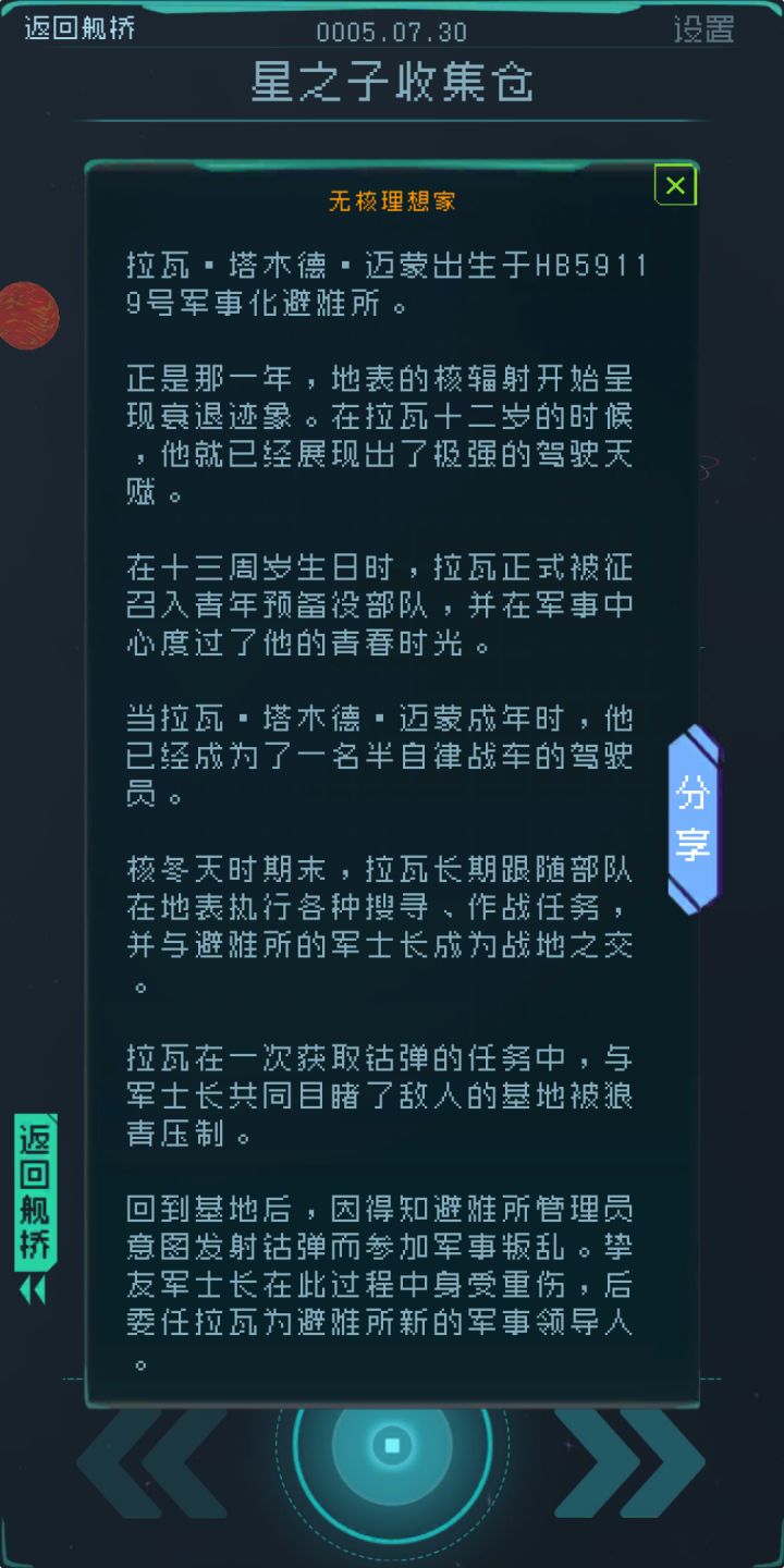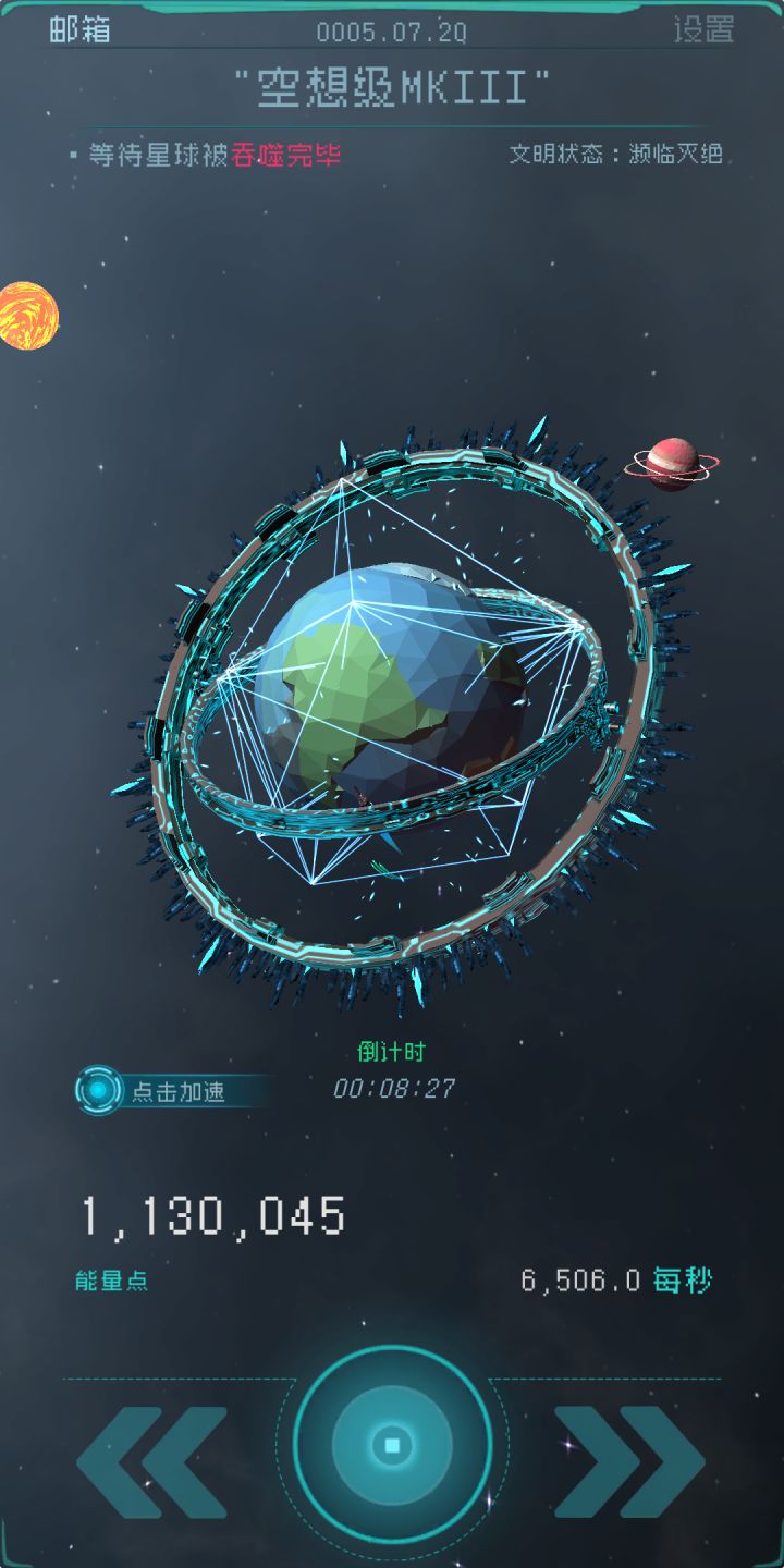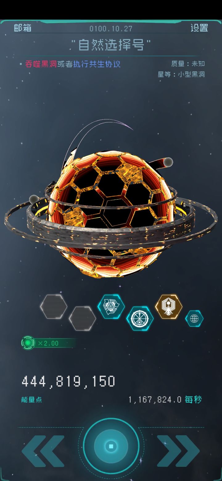 发一个取巧的攻略,是不是每次共生需要超长时间共生完会有一大堆能量浪费?可以先将手机时间调后至共生结束,注意不要曲速航行,然后将时间调回正常,等待负值的能量回正,再曲速航行就行了。这样不会负能量开局,也不会浪费多余能量。
