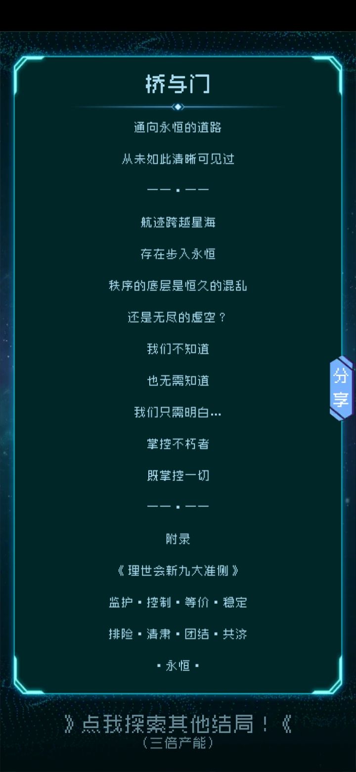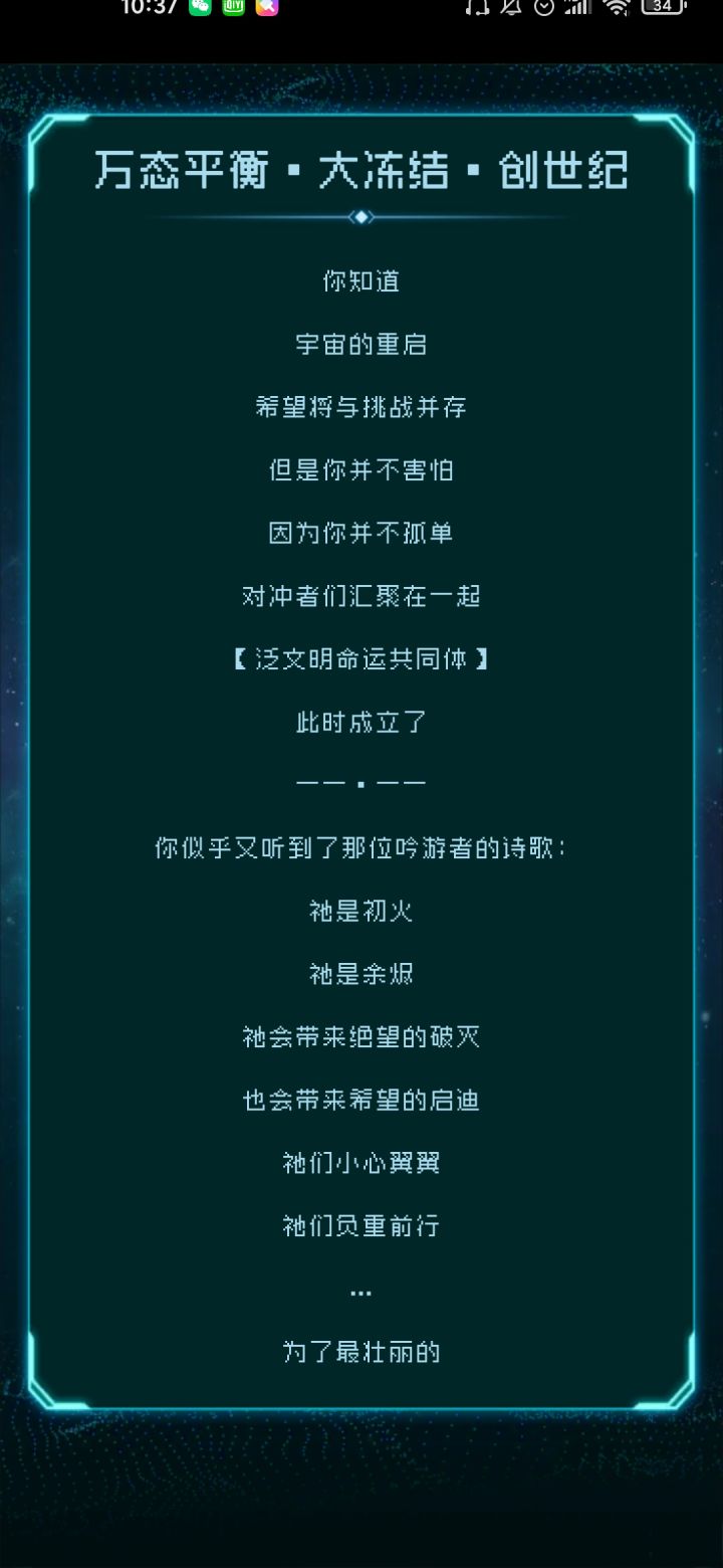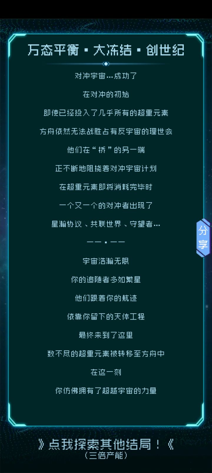 避雷:打创世纪吃鸡阶段的时候一个文明都别杀,否则存档会被污染无论你打多少周目都没法进入真结局(文明死了就搁对手界面躺尸了)你必须重置修为才可以打真结局(说多了都是泪)
