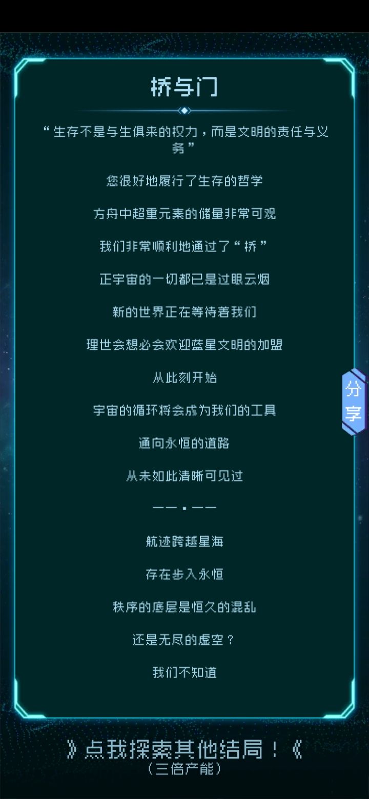 除了翡翠文明还有最后那个黑洞我共生了,其他全收割,这样就可以达成该结局(翡翠文明如果共生就可以拥有两个星之子)