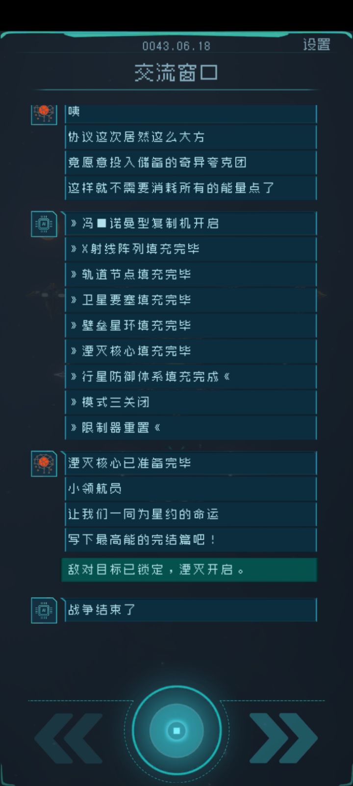 大佬求助啊,和星约打仗,逐光说战争结束了,就没有动静了,后面全都升级完了。