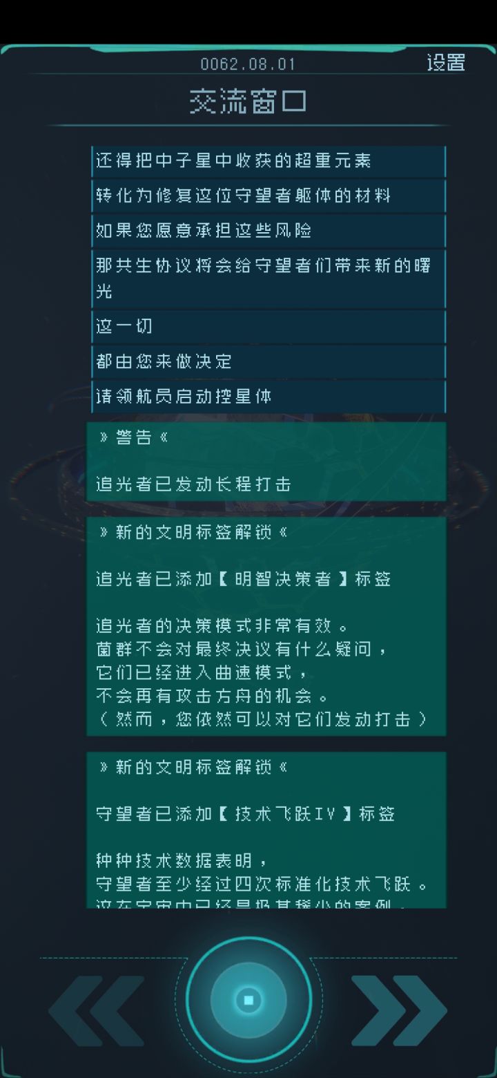 游戏内容很赞,无论是故事还是玩法都很符合胃口。但是,科技感少了点什么,比如NPC能不能把话念出来?用那种电电的音!到深红的时候完全无法声临其境😂