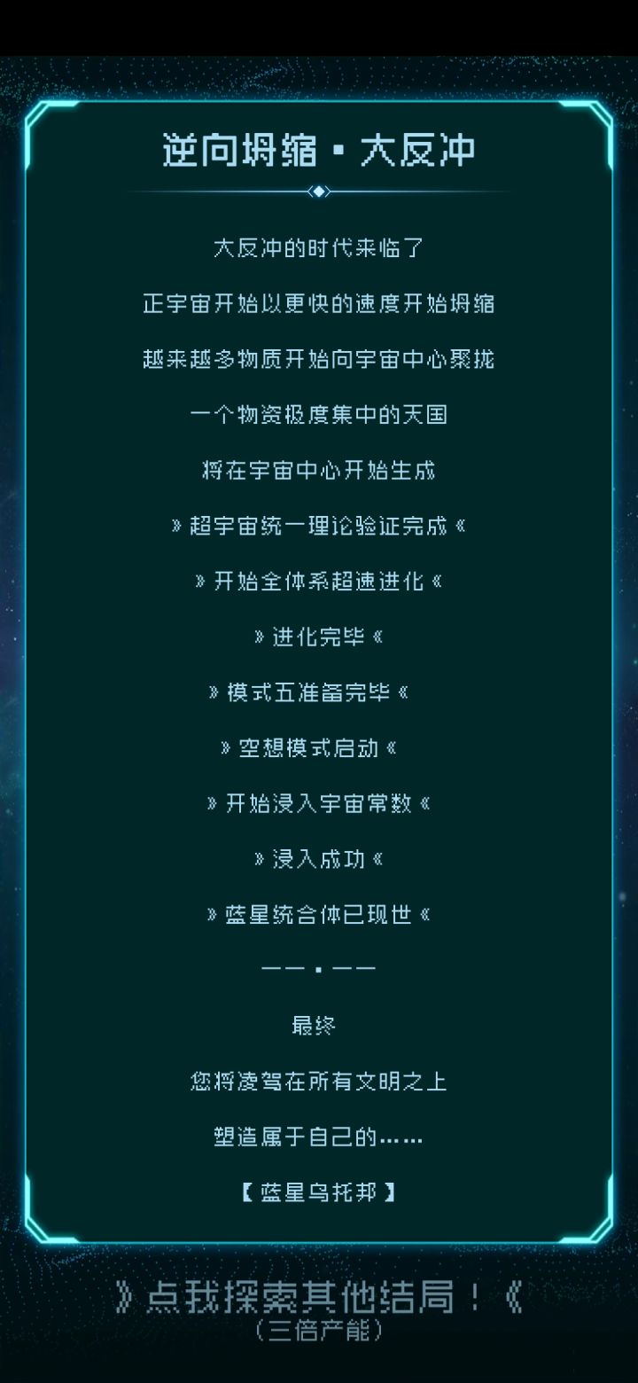 乌拉!希望游戏越来越好!希望明年能开更多星球,现在还是太少了