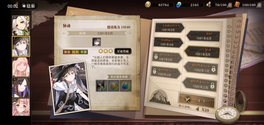 第一、打到2-1,回去打1-3的图,想得到150秒过关奖励,不用技能打怪基本都10秒内清一波,老师技能配合抽到的sp纪子可以秒一波,这样的速度都拿不到奖励,这人让没抽到sp角色的怎么打,sp角色和sr角色相差快一倍的战力了第二、关卡太拖沓,走路、说话和各种提示的时间都比打怪时间长得多第三、商店购买抽卡券礼盒和直接在抽卡界面抽的价格一样,那我为何要多此一举去商店买第四、怪物从四面八方来的,角色