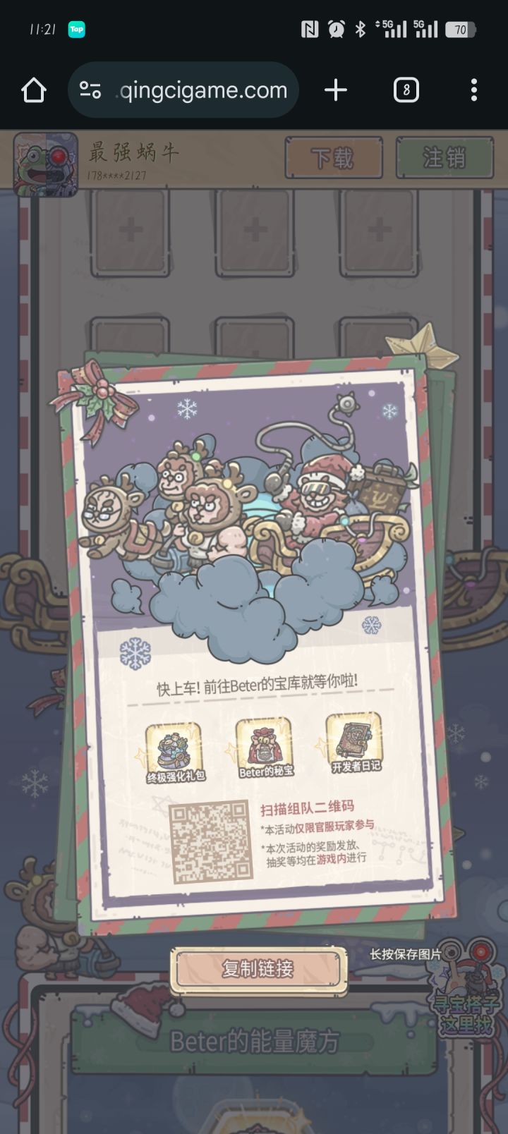 零氪小队,混奖励的来【最强蜗牛】听蜗的当个事儿办!加入寻宝小队,开启Beter宝库领取限定绿贵就像呼吸一样简单还有百年VIP卡限时抽取入队速戳:https://h5.qingcigame.com/snail/doubleFestival/entern69qldtnvcn?friend_id=a684ed88#最强蜗牛四周年