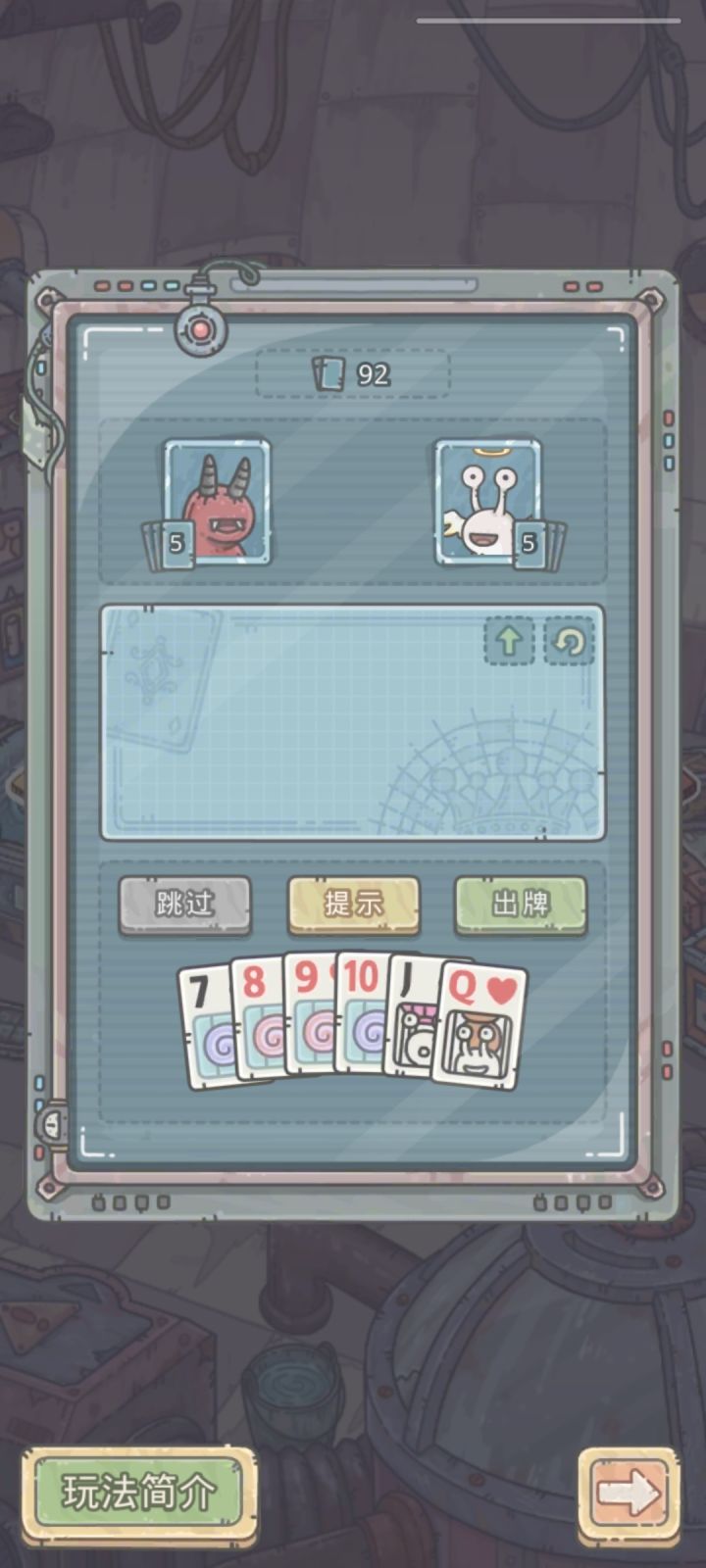 小游戏蜗牛干登眼攻略攻略一:如图所示,把六张牌全选上然后点击出牌。攻略二:只有2和大小王有特殊用处,其余牌近似相同。建议参考日麻牌效率思路摸打。尽量凑顺子对子出。当自己有牌权是,单+2近似必胜。
