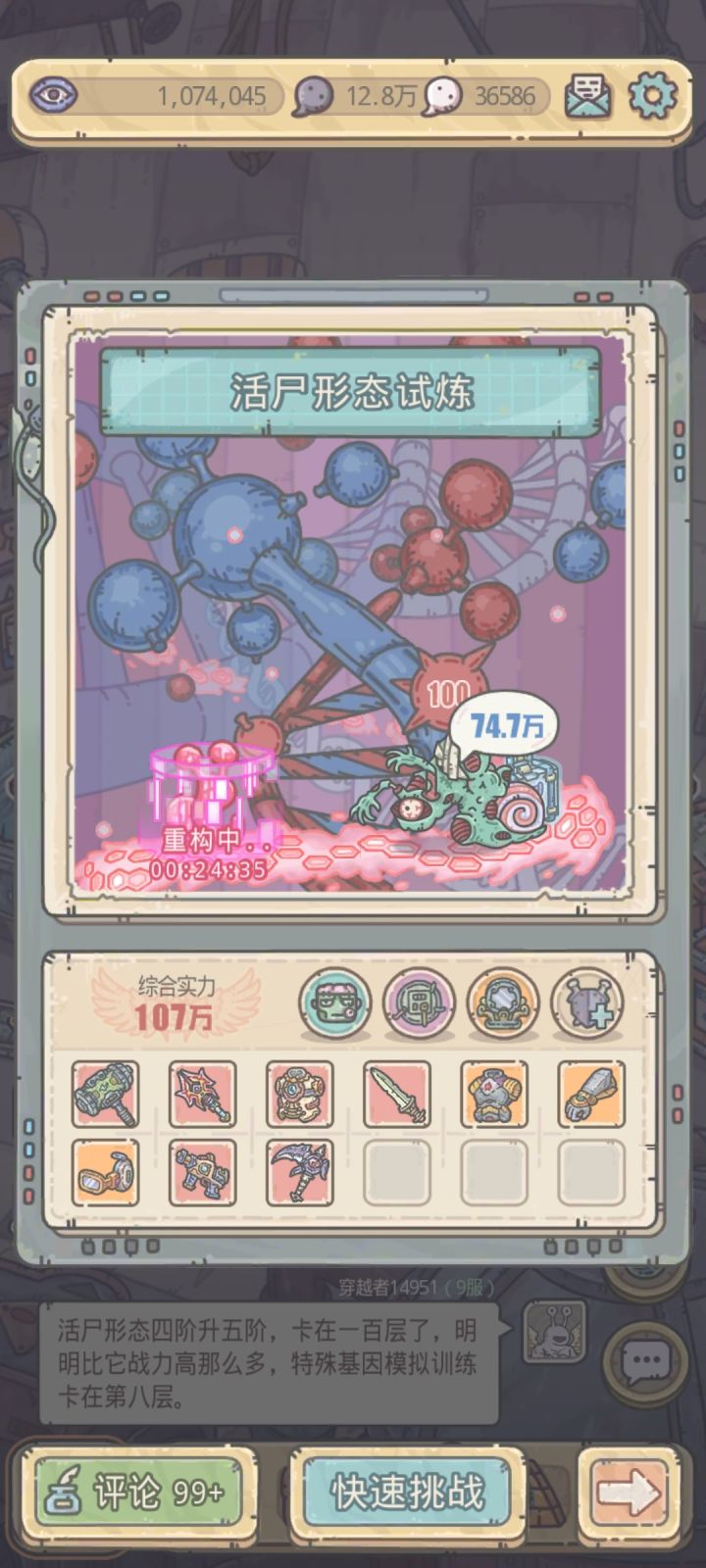 本文出自UFO攻略组,有需要的小伙伴可细品!更多攻略请关注微信公众号:飞碟的最强蜗牛话不多说,机械形态走起!!01 机械形态特点在原生形态下神经元进化会获得量子神经元(探索时获得双倍时间宝箱的概率+3%/+5%,)、超导水晶末梢(探索时获得藏宝图概率+3%/+5%)、超导细胞(探索时伤害减免+3%/+5%)三种器官,当视觉进化达到25级时(共计需要科技5600点、机械细胞44250),会解锁