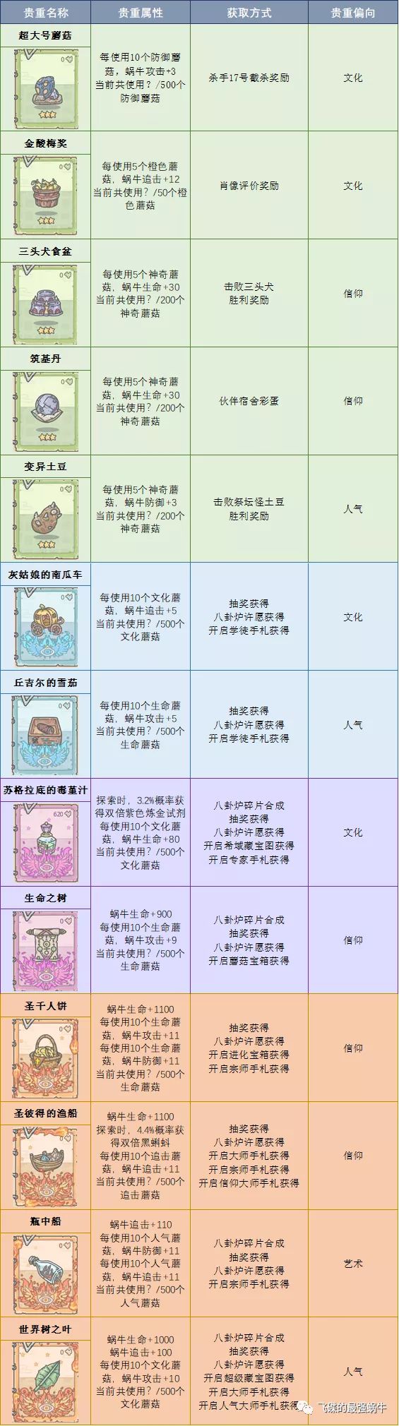 本文出自UFO攻略组,有需要的小伙伴可细品!更多攻略请关注微信公众号:飞碟的最强蜗牛今天细说下蘑菇那些事~话不多说,冲冲冲!!蘑菇是每天必吃,也是完成每日任务不可缺少的事情。每天吃一次蘑菇可以获得一小时的供奉加速,每天完成所有每日任务也可以获得一个紫色蘑菇。蘑菇分为两种,四围蘑菇和五围蘑菇。四围蘑菇:攻击蘑菇、生命蘑菇、防御蘑菇、追击蘑菇。五围蘑菇:人气蘑菇、艺术蘑菇、信仰蘑菇、文