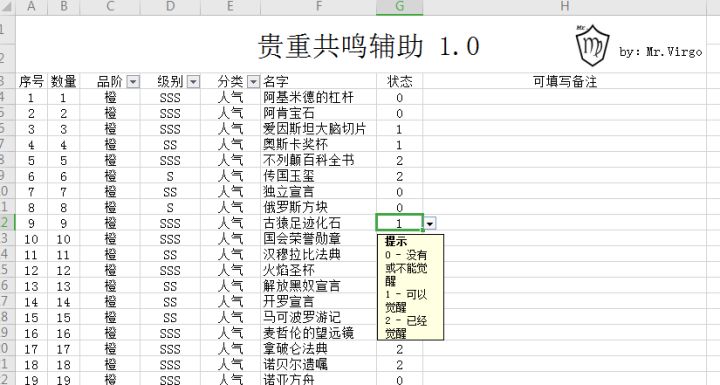 纯手工输入,有错勿见怪。先放预览图说明一下,第一次使用需要填写数据下图中碎片数量代表这个贵重可以觉醒(炼金水和低阶材料自备)填写表中的备注是留给大家自己的更正一下!!!!!蓝贵3星升满级是要10个碎片!不是20个!!图片写错了!!转载请注明出处及作者,谢谢。下载地址https://share.weiyun.com/10bzDKeM-----------------------分割线