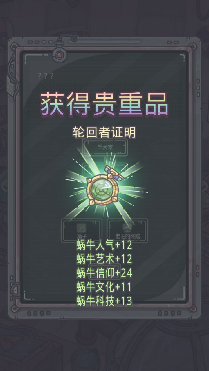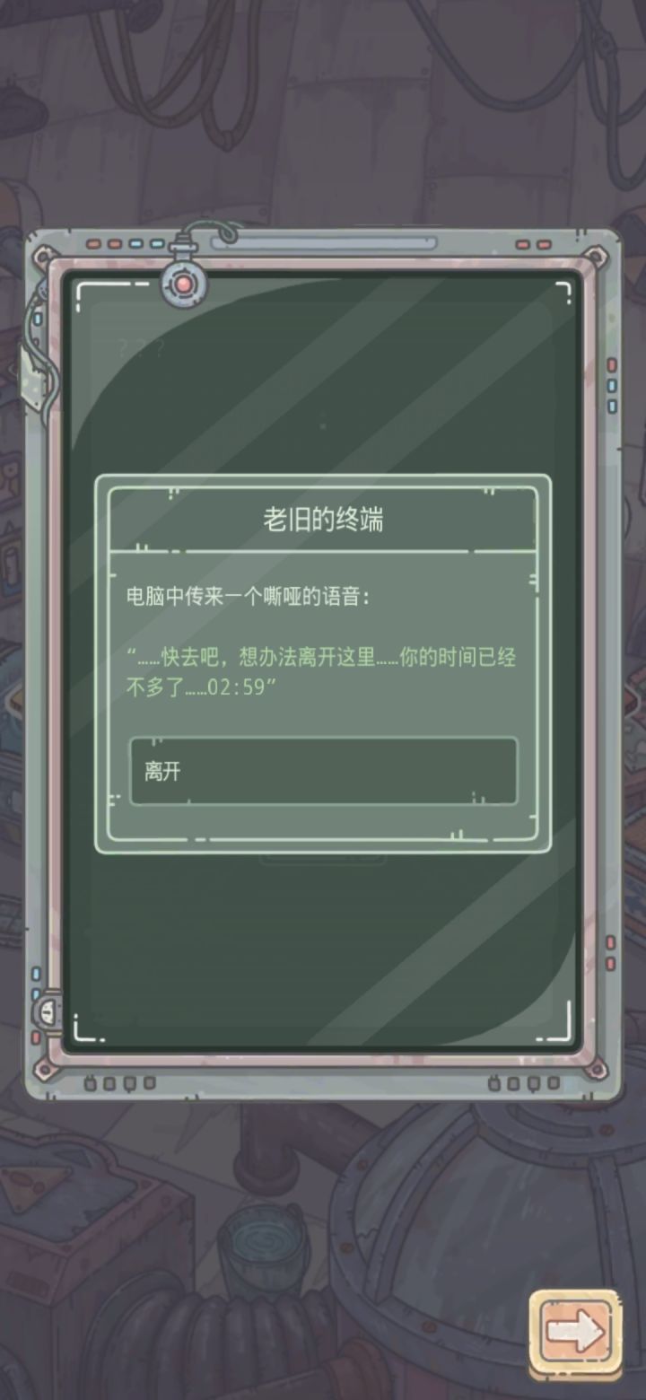 过了第一个房间有个老旧终端机,一直点它,点到三分钟时间结束,会有个箱子,打开就是绿贵。点360下