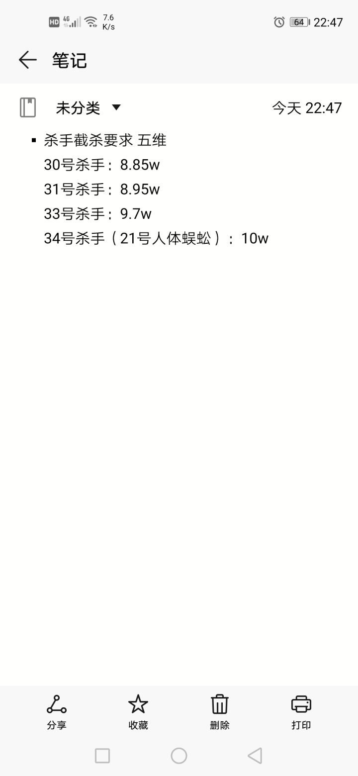 部分杀手截杀五维要求