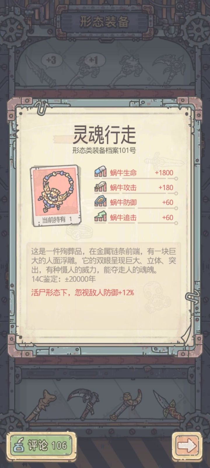 2、丧失形态可以以更低的攻击制霸西域,家族丧尸8.5制霸(三次暴击)。因为丧尸有个神器装备为灵魂行走,忽视12%防御(我没有这个装备所以用异种),且丧尸生命高(为什么看中生命后面再讲)。