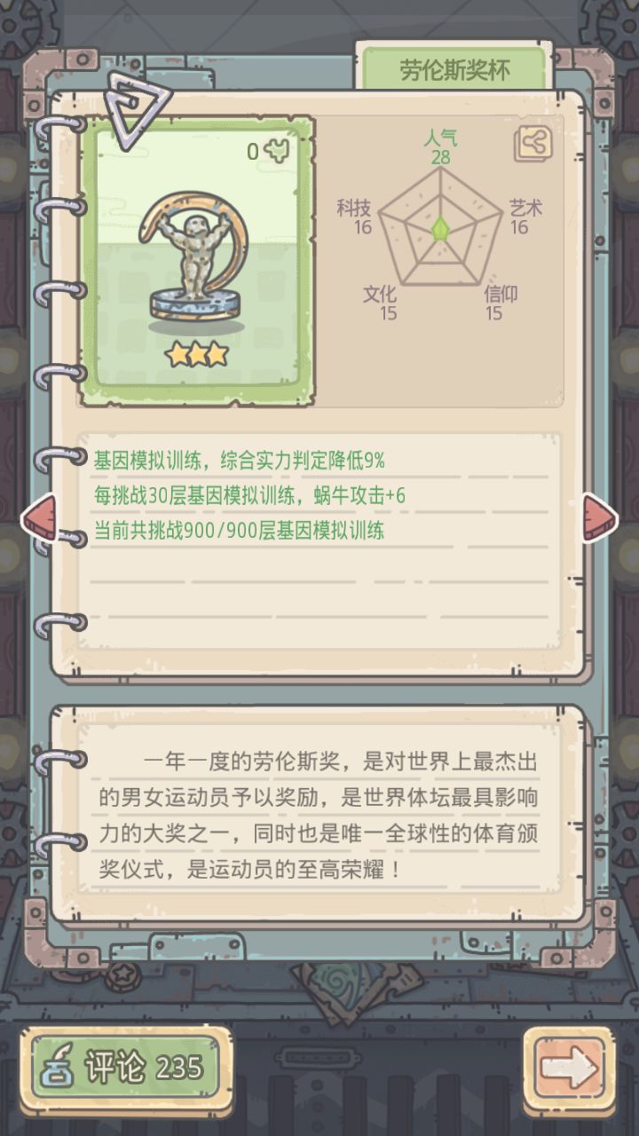 重点:需要氪金贵重:“劳伦斯奖杯”效果是:实力判定降低9%,收藏家天赋中间点到基因训练伤害+2.5%具体配置:蜗牛装备标配就行,德古拉斗篷必须,没毒龙爆击贵重顶上就行。人物数据标配就行罗盘贵重:物种起源,辛特,勒的名单,雅典娜神像,玛雅头骨水晶,蒙娜丽莎。“儒略历”放文化位置也可以替换掉辛特勒的名单(文化位置是加攻击,优先推荐文化数值高的贵重)具体思路:吸血衣配合物种起源、辛特,勒的名单提