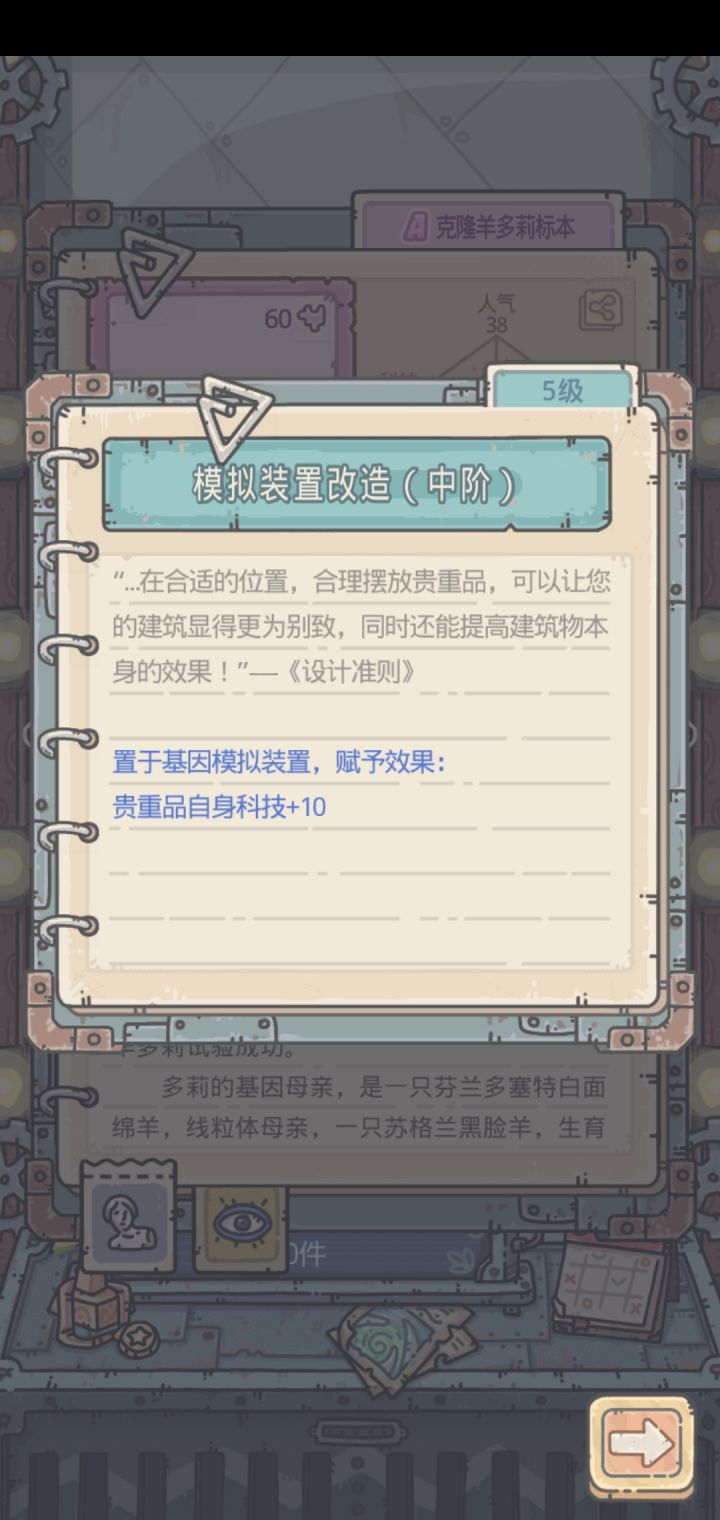 在贵重里面,加五维的特性并不是只适用于限定的场景,而是直接给贵重加五维属性,打个比方:以多利羊这个加科技的特性为例,这个+10的科技并不只适用于基因模拟的罗盘里,而是直接给你的蜗牛加科技值这是换贵重之前和之后的五维,可以看到科技+10了,而这种特性同样适用于探索,家园,格斗场和博物馆,一个加的也许不多,但是积少成多,把所有的换成这种加五维属性的也能加的比较可观,也许有人会问有什么用。其实很多地