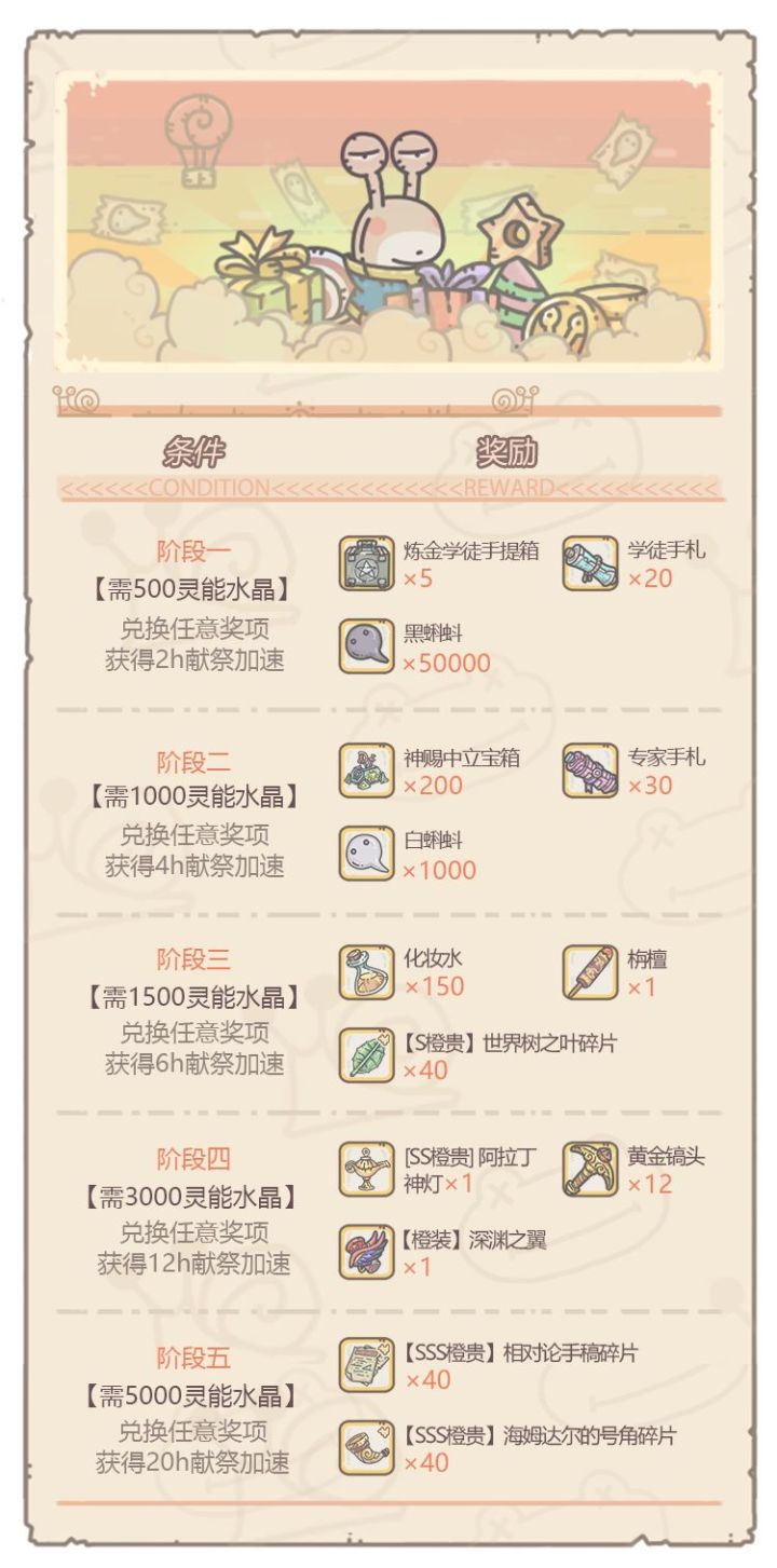 阶段一,20学徒手札(最差20蓝碎)好像比5w黑蝌蚪性价比高,参考落魄的贵族7.2w卖一个蓝贵。黑蝌蚪开装备和克隆机消耗比较大,目前杀了狸先生以后有30w,不碰这两样勉强维持收支平衡。至于蓝绿炼金药剂后期会溢出,暂时不考虑。阶段二,1000白蝌蚪。但不知道会不会缺中立宝箱,现在屯了以后只有238碎片有点慌。阶段三,化妆水,150化妆水可以在肖像里面提升一档,等价于探索的280攻击/防御。世界树