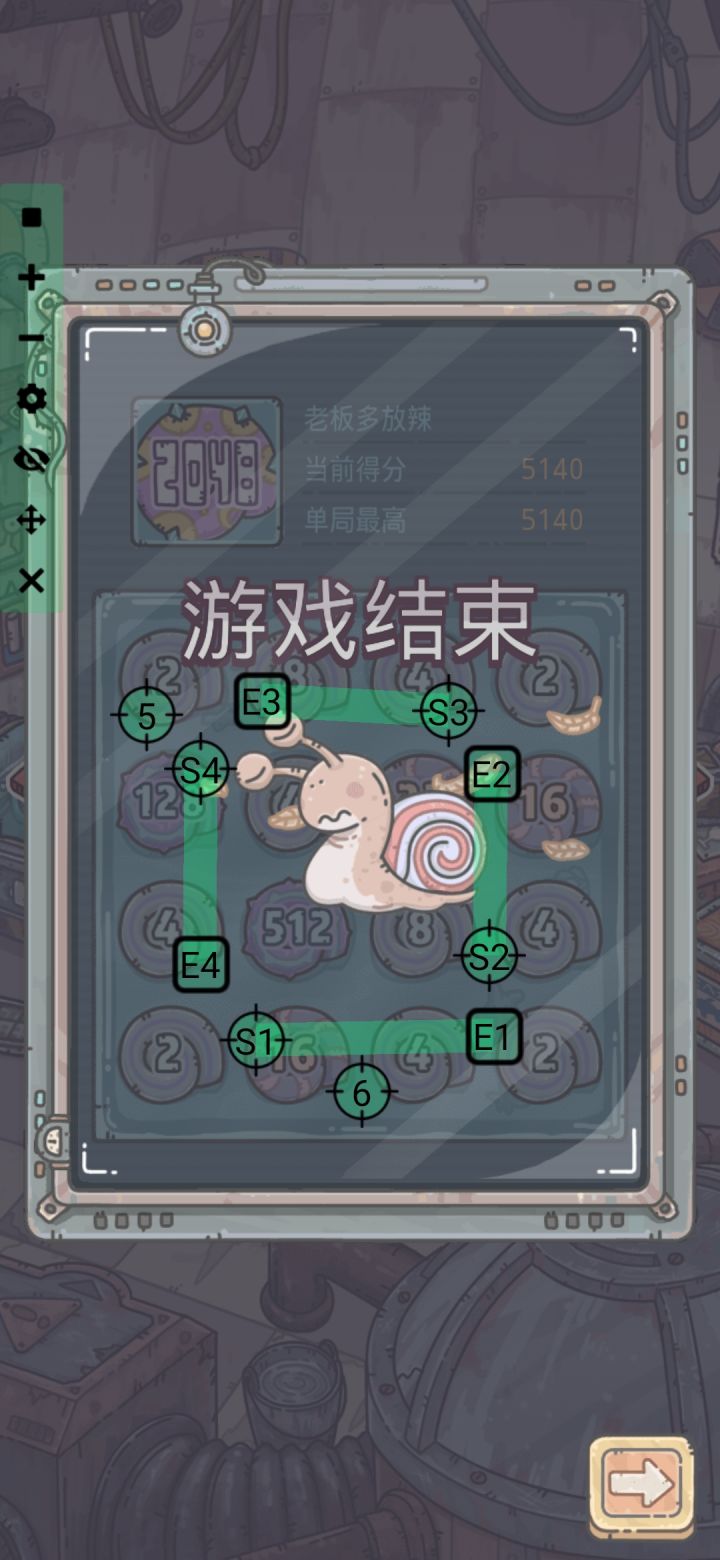 只是提供一个连点器无脑挂机思路,每局无脑画圈两千分起步,直接上图滑动按键s1延迟0.5秒,滑动按键S2.S3.S4依次加0.5秒的延迟,也就是0.5s或者500ms。按键5和按键6是为了游戏结束后重新开始游戏,按键5延迟间隔为一秒,时间太短会点到其他游戏,按键6是为了点击开始游戏,然后4个滑动按键不听循环,这俩按键可以全程开启,不影响游戏过程。按键位置与数据仅供参考,只是提供一个懒人挂机方法。