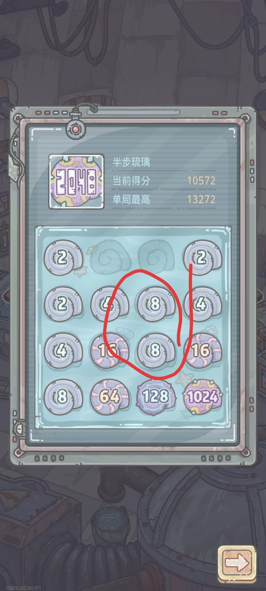 2048有bug,圈起来的两个8中,下面那个原来是16,变成8了,现在不能和16合也不能和8合#游戏日常 #最强蜗牛