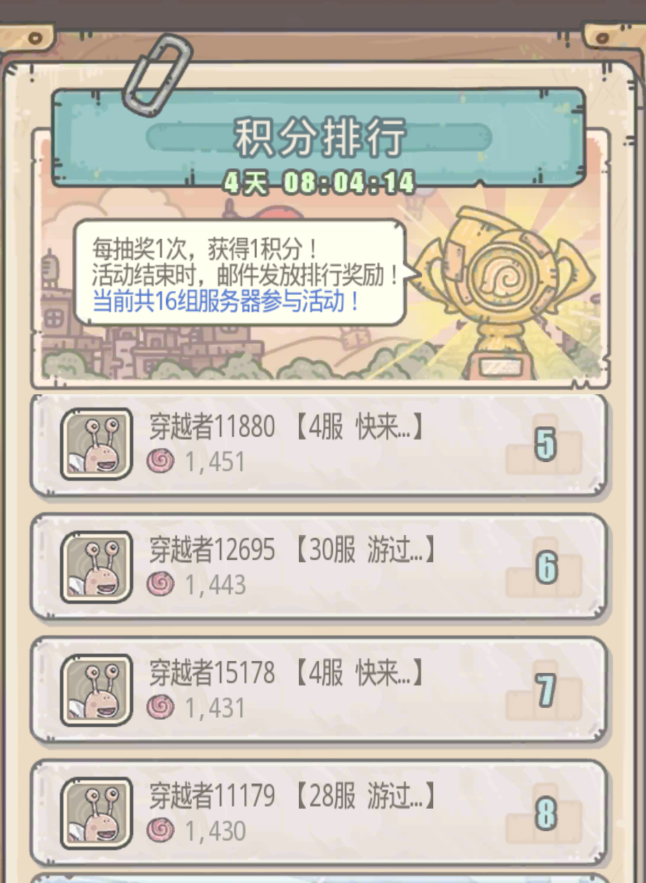 这个排行榜排行规则能不能改一下,设一个上榜的下限,比如最低入榜战力不低于10万或20万,10万20万对于想好好玩这个游戏的人来说也就是半天一天的事。从上次中秋活动到现在,包括周周活动都是那些号贩子卖的小号入榜,其实他们也就是刷个开局号,但是却影响正常玩家的心情。全是几千战力小号。