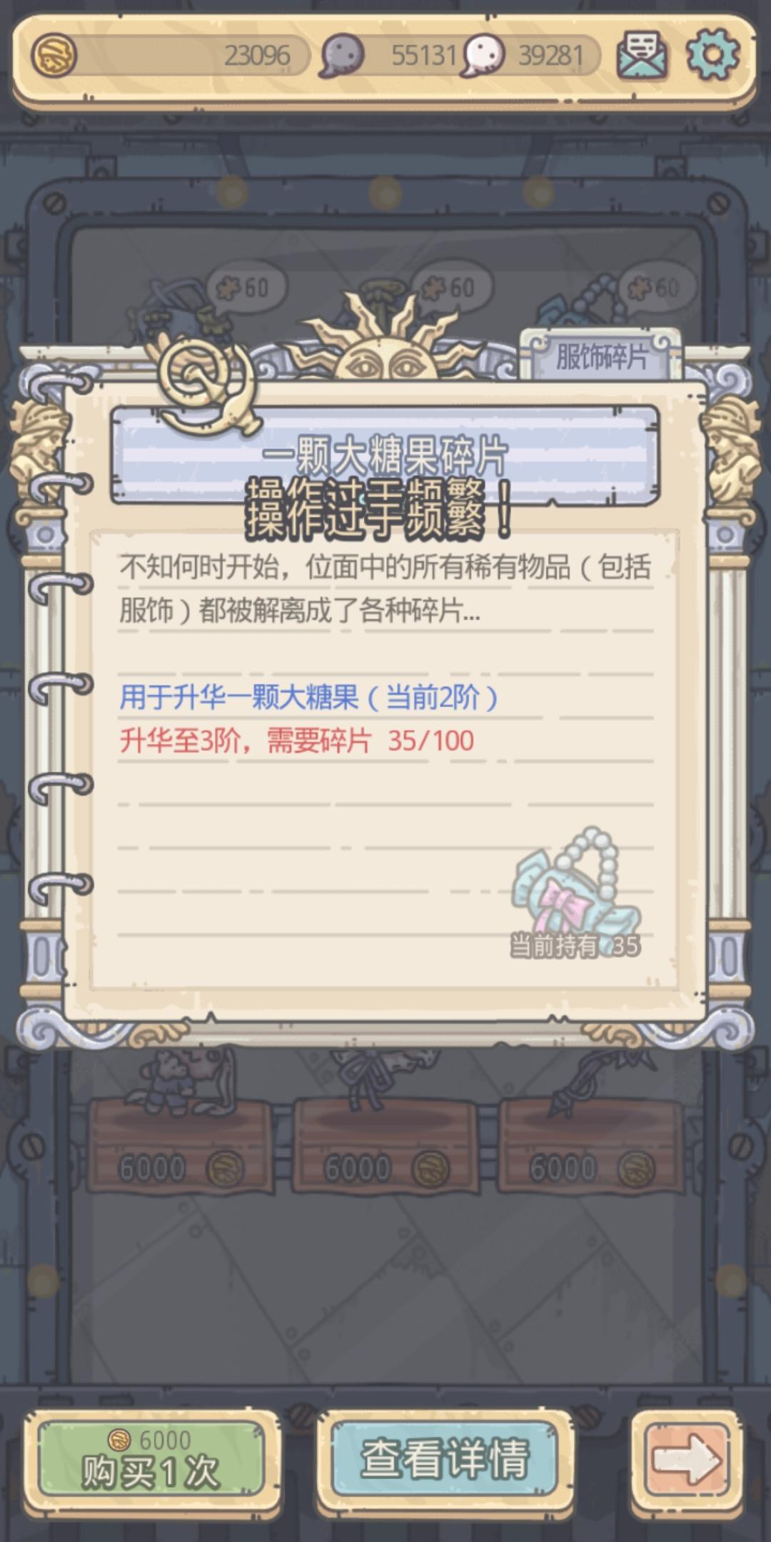 蜗牛格斗挑战的时候提示操作过于频繁服装商店卖服装也提示操作过于频繁