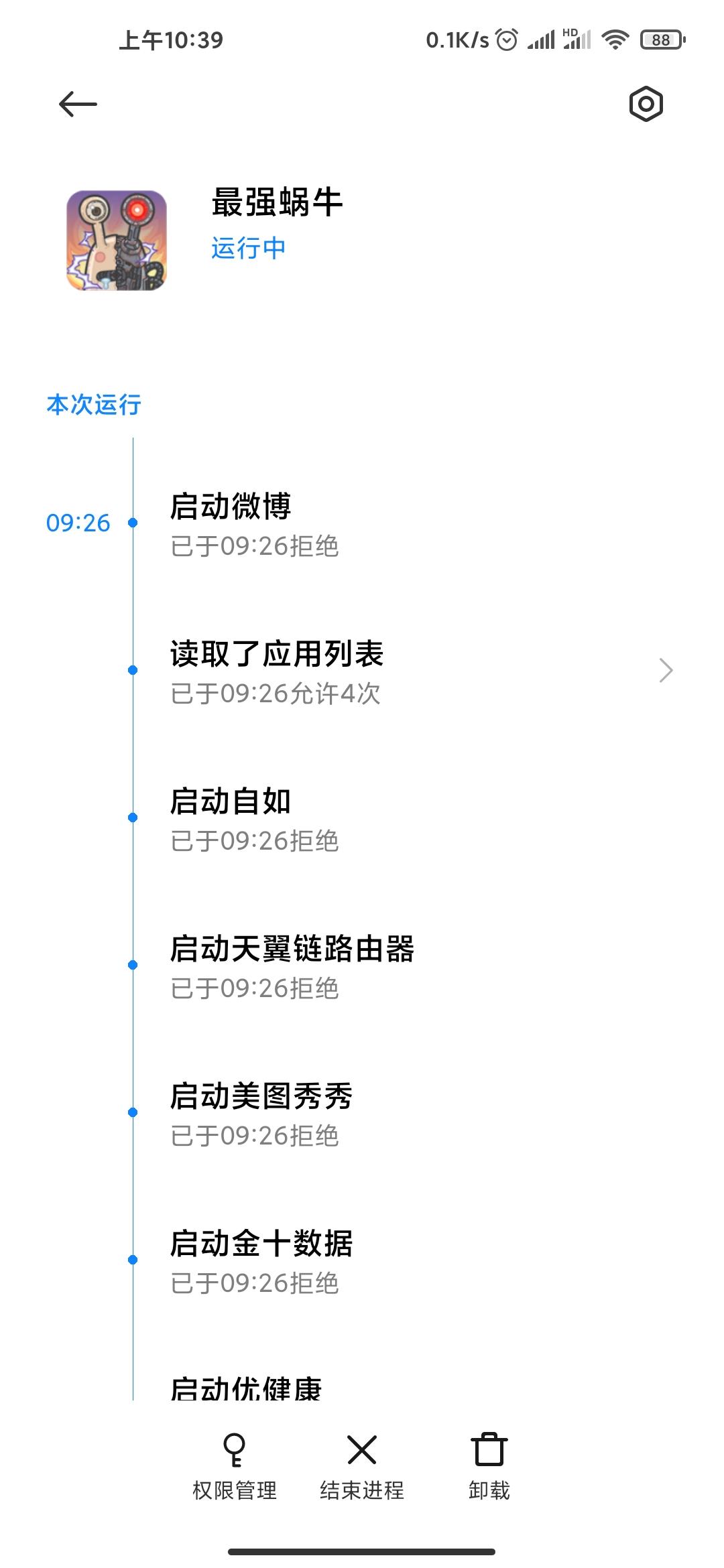如图,你老试图启动我的其他APP干啥?还读取我应用列表,官方能不能解释下