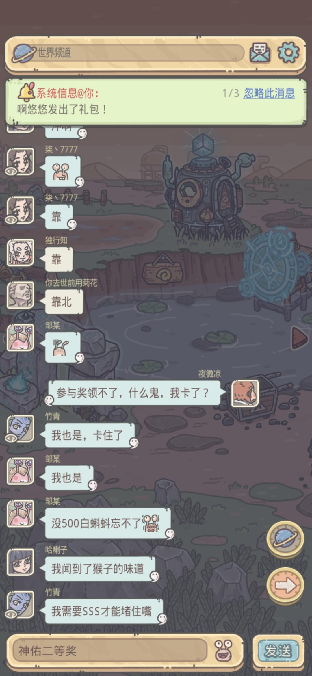 装备太差卡了太久啦。希望官方能够给我一点儿欧气,让我抽中鱼骨,抽中狗眼,了以抚平心灵的创伤。不要让我觉得这是一款恶意满满的游戏。 怎么说,求安慰。求大腿。!!!@最强蜗牛。 我的ID WT52KDGWLR1G40 菜鸡求守护。