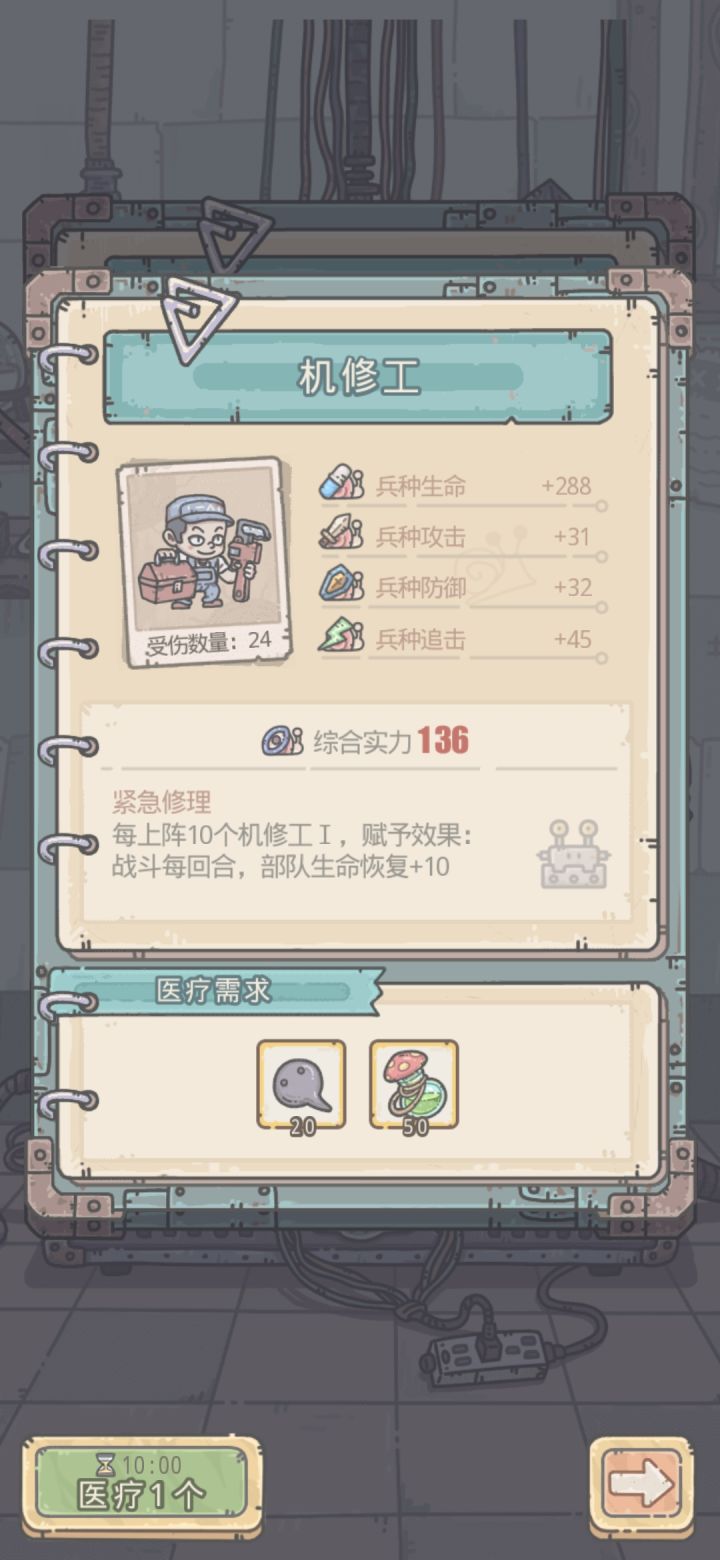 翻遍帖子难道就我觉得医疗装置的数量选择是脱裤子放屁多此一举吗?总共就有疗一个和疗满这俩选项,为啥不都放一起非得点一下在提示能一次放满?在这秀操作有意思吗?