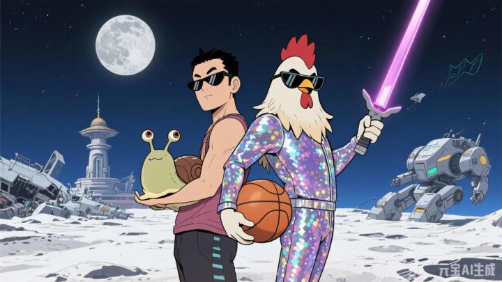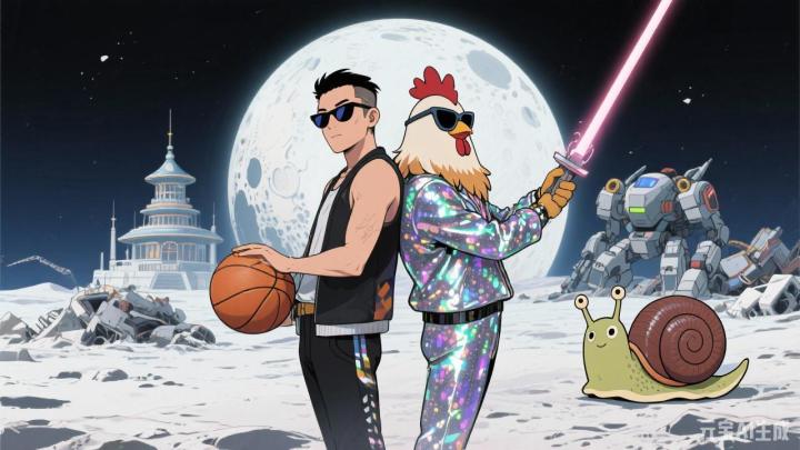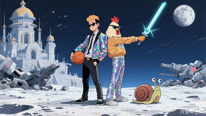 当旃檀的香气裹着一道金光闪过,召唤阵里出现的不是唐僧也不是罗汉,而是穿着亮片演出服的鸡哥蔡学坤时,蜗牛基地的显示屏前洒落了一地瓜子壳。"鸡你太美——不是!救你太美!"鸡哥扶了扶歪掉的鸭舌帽,对着目瞪口呆的蜗牛打了个响指,"嫦娥仙子有难?这波我必须带队出征!"月球表面,广寒宫拆迁现场吴刚正抡着电锯狂砍桂花树:"反抗军装修队承揽月球改造工程!嫦娥仙子快签了这份《广寒宫产权转让协议》!"突然被一记