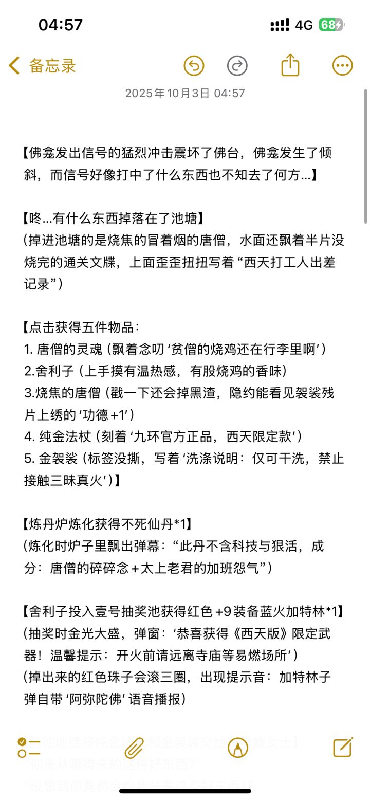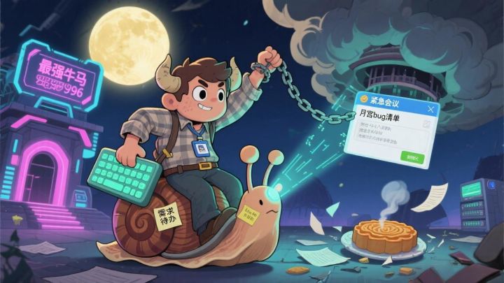 🐂 师傅档案:最强牛马背景设定:本是某互联网大厂资深程序员,因连续加班500天无休,在又一个“早八”打卡时被神秘力量吸入旃檀,意外成为救嫦娥的导师。他的信条是:“没有救不了的嫦娥,只有优化不完的需求。”救援动机:起初只想尽快“下班”回公司改BUG,但发现月宫危机竟是由一套极其复杂的“月饼生产系统”崩溃引发,作为技术大牛的专业病发作,决定出手“重构代码,拯救嫦娥”。形象特征:身穿格子衬衫,肩挎