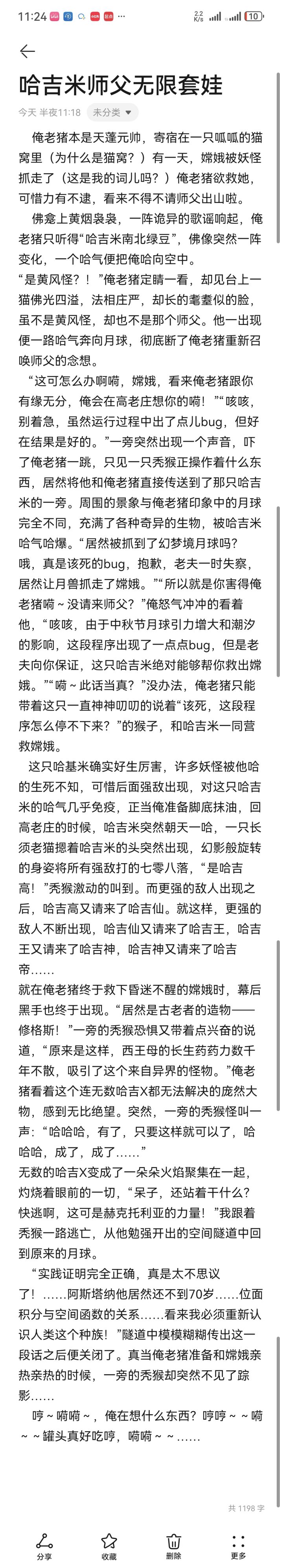 哈哈哈,三花聚顶,羽化登仙,蜗爷我成了!!!不,我是鹂?不对,我是蜗?不不不不对……我是谁?我是呱!我是呱啊!哈哈哈!师父,师父,我究竟是谁啊?我分不清!我真的分不清!娃,你着相了~猪八戒?八戒,你知道我是谁吗?嫦娥要我去救?这个世界有神仙?对了!对了!神仙,她一定知道我是谁!我要去找她,我一定要找到她!反抗军?蜘蛛娘?狼叔?绿巨娘……好熟悉呀,我是不是在哪里见过,为什么!你们为什么要挡我的路
