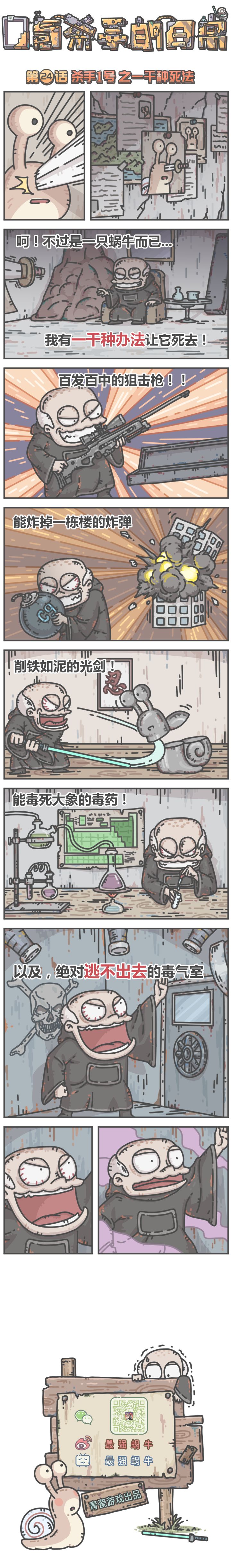 亲爱的蜗爷:我是你们第一喜欢的白蝌蚪。前话说到:杀手1号为了复仇蜗牛准备了一千种方法,谁知却把自己给gg了...()而这一话中,我们将揭示杀手1号成为原力之神的真正原因...注:漫画内容只为博君一乐,与游戏内容无直接关联!
