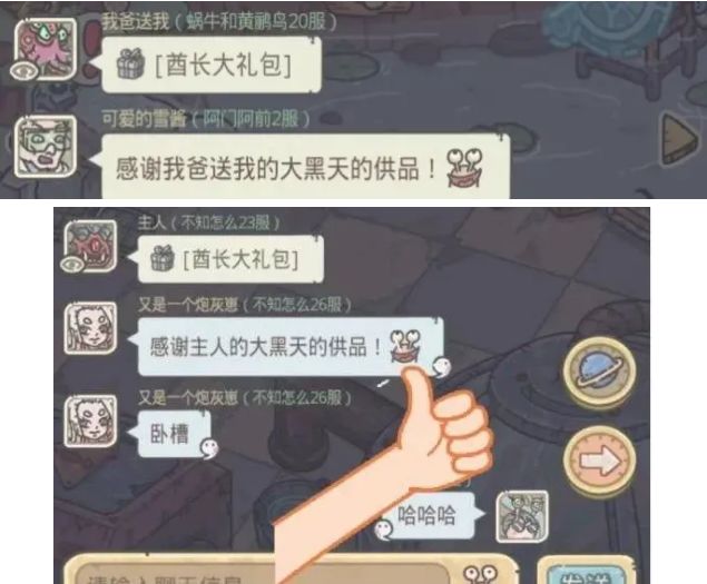 本章取自公众号:最强情报站《最强蜗牛》这款游戏是偏向于单机玩法的,但聊天室、俱乐部、PVP玩法也是有的,说起聊天室估计各位蜗爷都能讲出不少乐子,游戏中的聊天框除了可以聊天之外还能领取别的玩家和NPC发的宝箱,比如NPC房地产大佬发的红包、玩家发的众神礼包、酋长大礼包等等。当我们领取了玩家的众神礼包之后还会自动发一句感谢的话,但是当发红包的人取名不怀好意的时候,就会有很多好笑的事情发生。话不多说