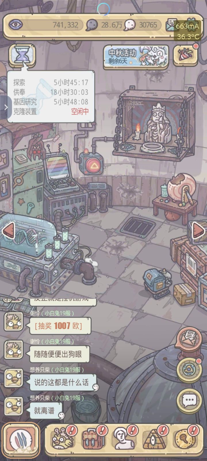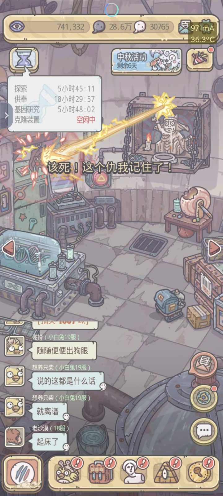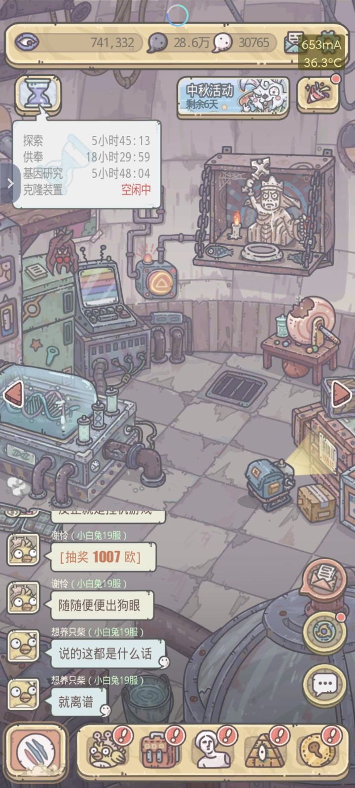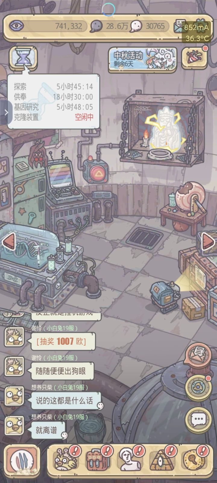 基因研究记录:2022.11.4距离龙八不知道多少天龙研究了一半,挂机用天使基本没动目前开始机械研究研究还有86天,机械小伙伴100用挂机面板服务器,佛系收菜流…等龙八来算时间