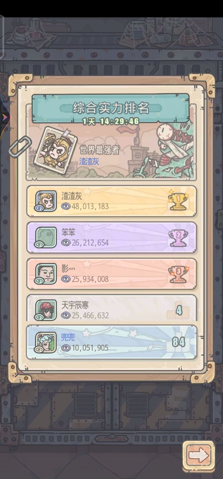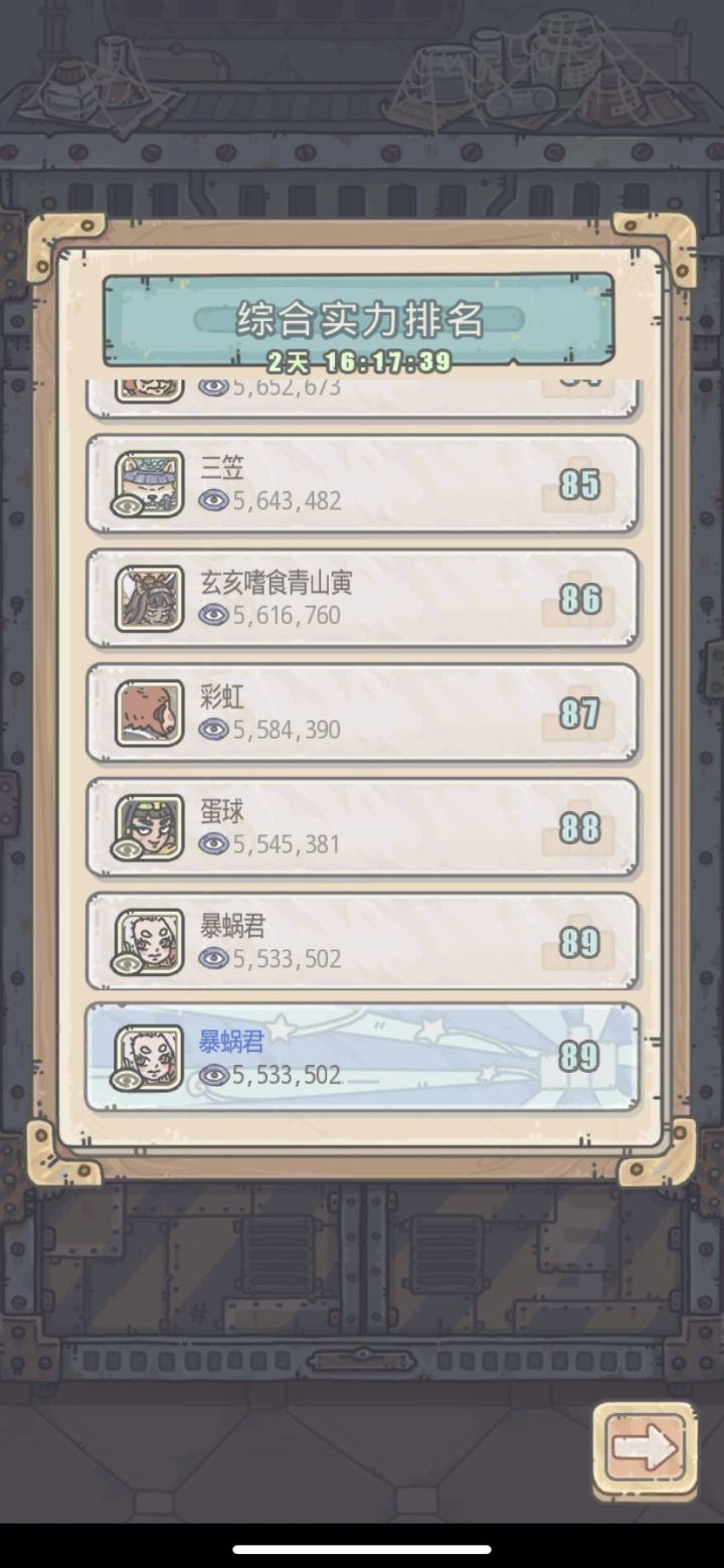 在自己不懈的努力下,终于挤进了前90名。我最近上的跟勤快,但是回头看看之前的人战力涨的并不是很多,难道跟小伙伴们说的一样?他们弃坑了?不应该呀,好多人都是服务器第二公会的人。不至于吧,不管怎么说吧,我的进步有目共睹。加油骚年
