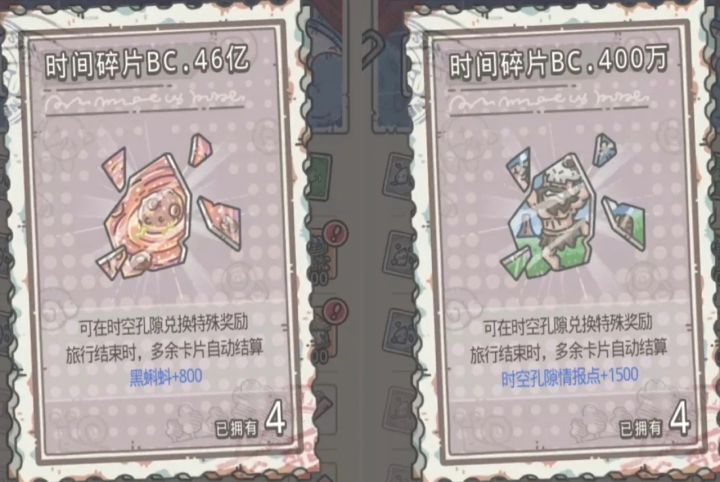 昨晚偶然发现的,卡片上的配图,是对应卡片名字年份里的历史事件,历史白痴的我只能百度一下,也欢迎纠错补充:公元前46亿年,早期太阳系形成,原始地球诞生,公元前400万年,东非史前人发明了石刀和卵石器,公元前3500年,两河流域南部出现奴隶制小国,1621年,这个没找到,大概是某些东西发布?1914年,一战开始,1945年,扔小男孩,2008年,金融危机,2020年,最强蜗牛开服,编