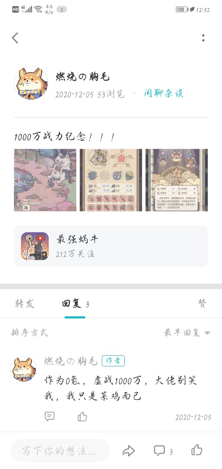 距离上次1000万战力,已经过去了3个月在这签到的248天里,全靠一天两次收菜!脸黑的不是主要的,你要你能坚持,就能把其他人坚持到退游……下次纪念是神马时候呢???希望蜗牛能够好好的坚持!!!