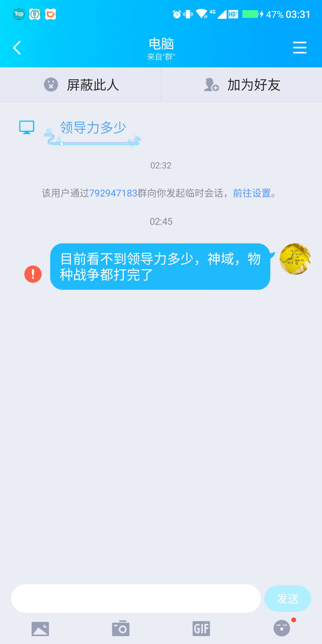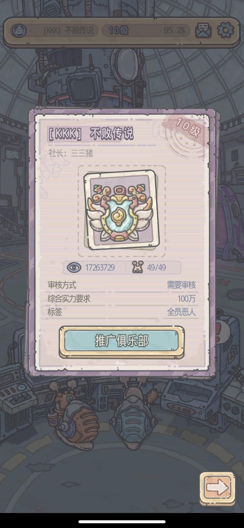 安卓20服,野生蜗牛俱乐部,社长“电脑”在无征求意见及告知的情况下踢人没错,那人是我,我是谁?以前叫“不灭者9527”,因为游戏改版,要求重新改名字,现在叫“眼球柠檬汁”,目前在该服战力榜50-60浮动从俱乐部4级到现在10级,虽然平时算不算活跃,但俱乐部里面也总能混个眼熟。游戏刚开了第一次物种战争,小兵该死死该伤伤,每天活动一次不落。完事不到一天,社长QQ来一句,领导力多少?也不让你回复