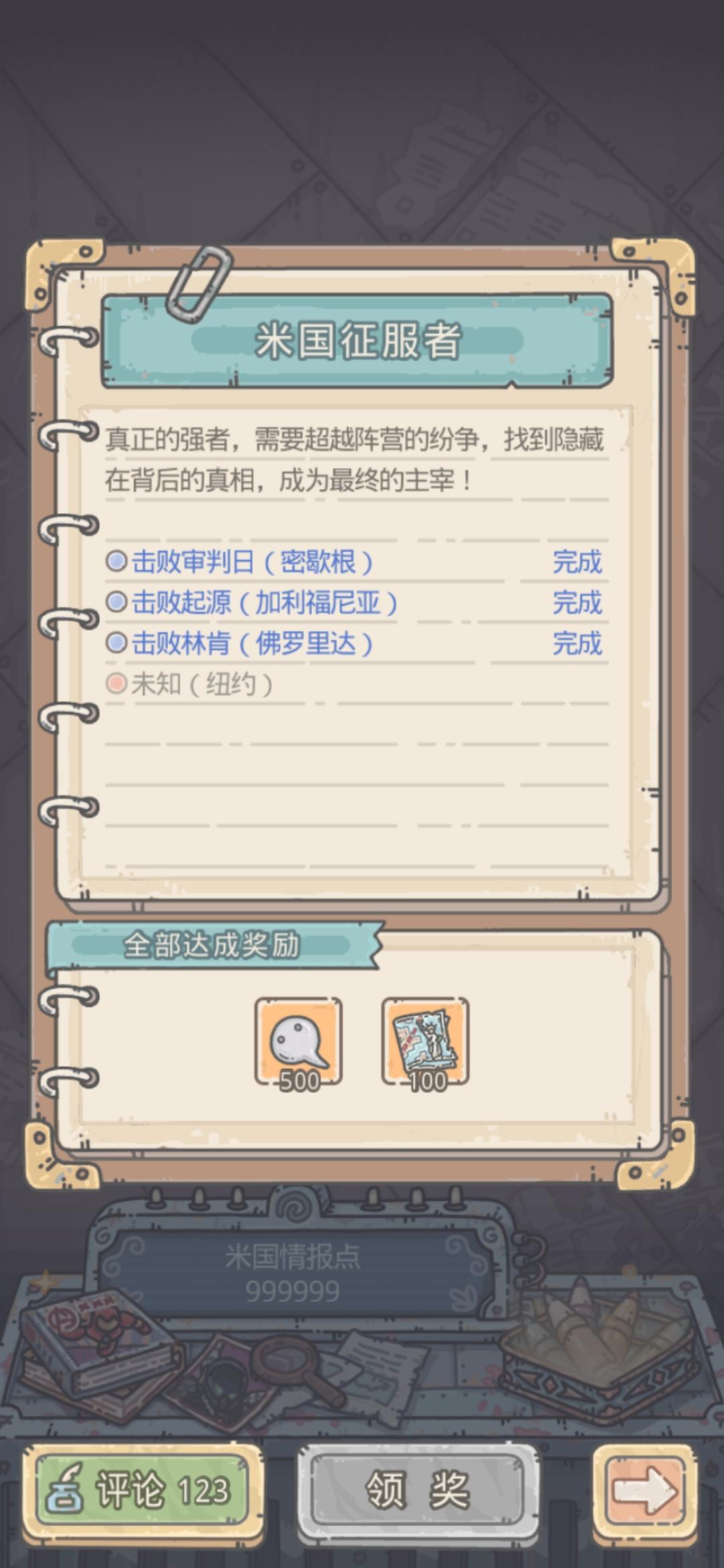 好心人,帮下忙告诉告诉我,米国征服者中的这最后一个在哪,我刷了都十次了,也没找到啊