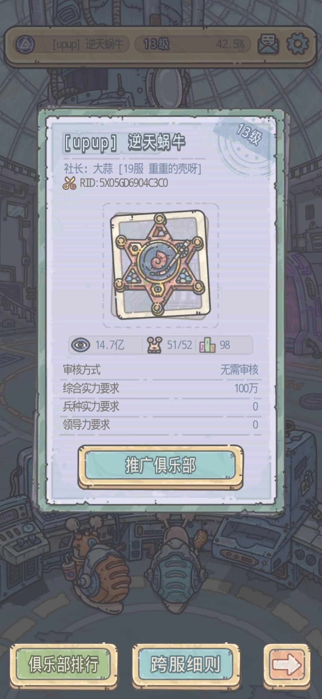 有没有小咸鱼公会抱团的?逆天蜗牛5X05GD6904C3C0,常驻活跃人数20,排名95左右。半路接手这个公会一年了,想再拉一些佛系咸鱼来养老,不限战力,7天摸一下就行