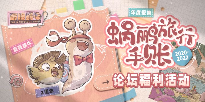 亲爱的蜗爷:我是你们的二周年限定白蝌蚪~不知不觉《最强蜗牛》就快过两岁生日啦!谢谢蜗爷们的一路陪伴!这两年来每一次相遇,都值得被画上浓墨重彩的一笔~蜗们将这份美好封存制作成了每位蜗爷的专属手账,现在,翻开这本『蜗鹂旅行手帐』,重现鹂蜗记忆里的每次成长吧!>>点击开启属于你的【阿白小提示:手账中藏有6个彩蛋奖励待蜗爷们仔细寻找哦~】蜗爷们是否都已经收获了属于自己的旅行手账本呢,快来本帖回